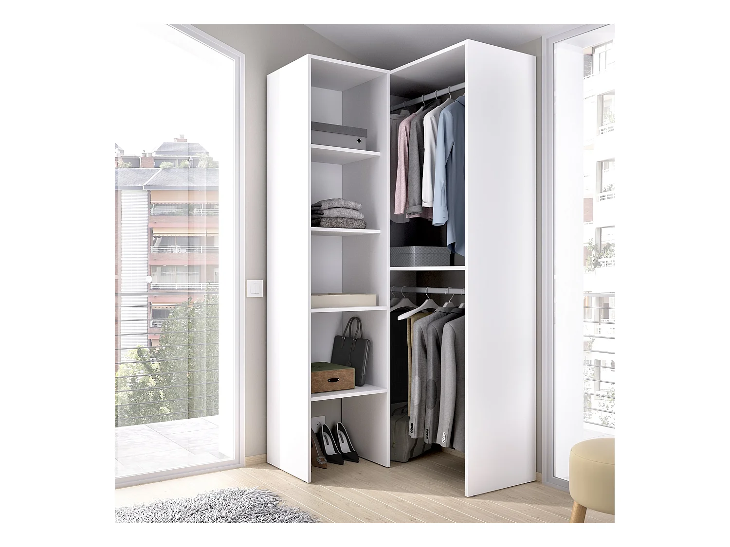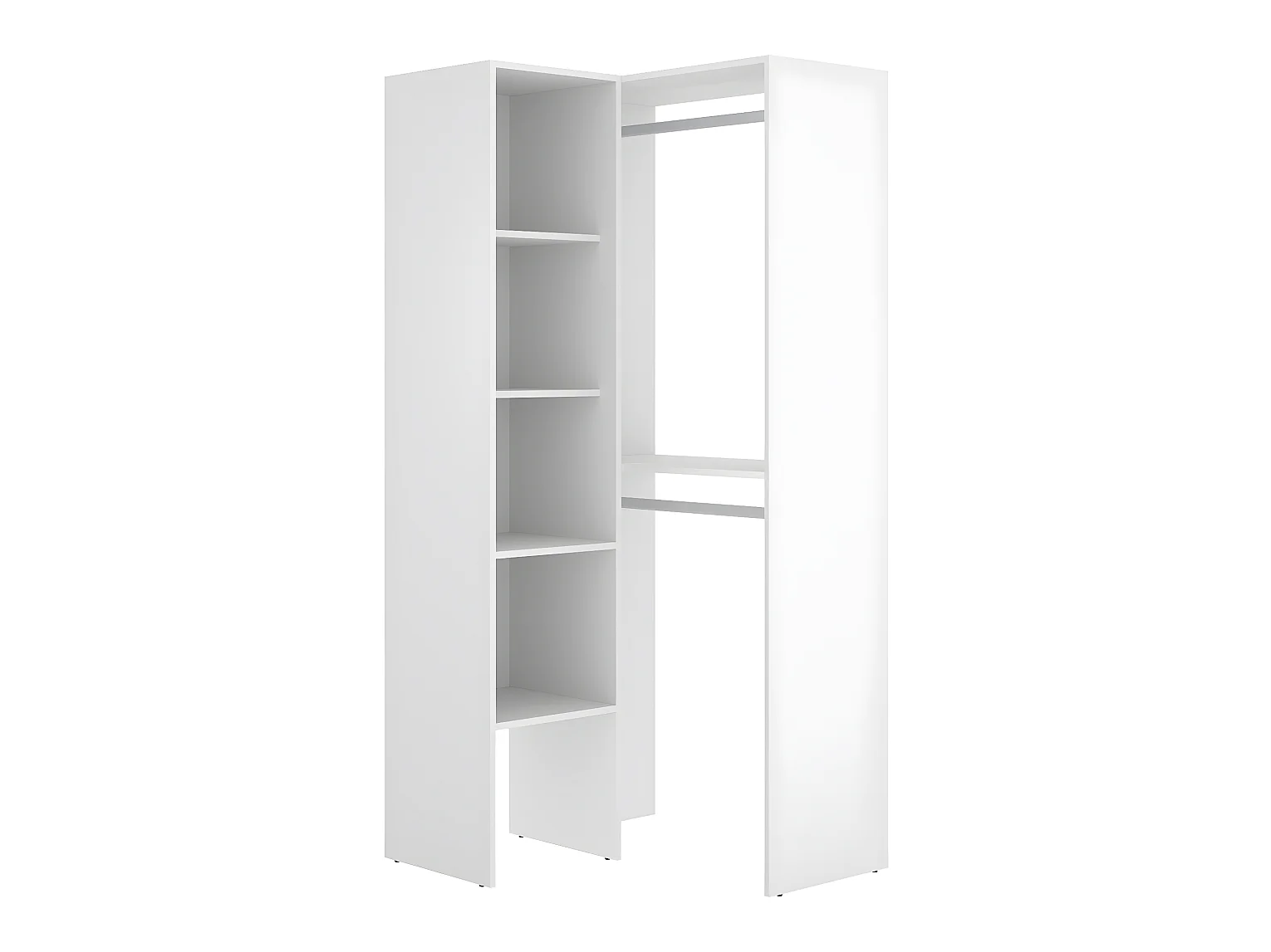 Armoire dressing d'angle en panneaux de particules mélaminés coloris blanc - Longueur 79.5 x Profondeur 88.5 x Hauteur 185 cm