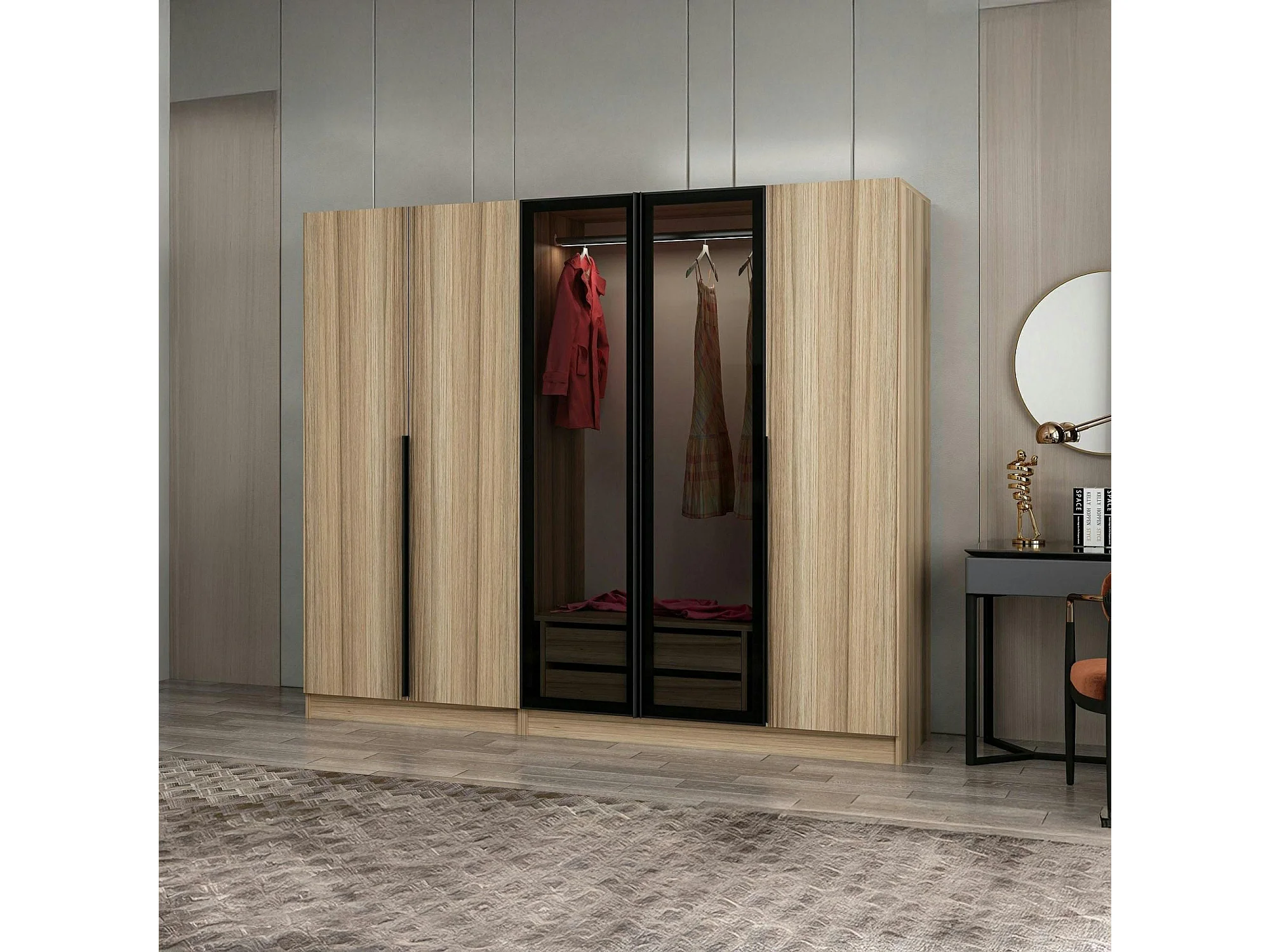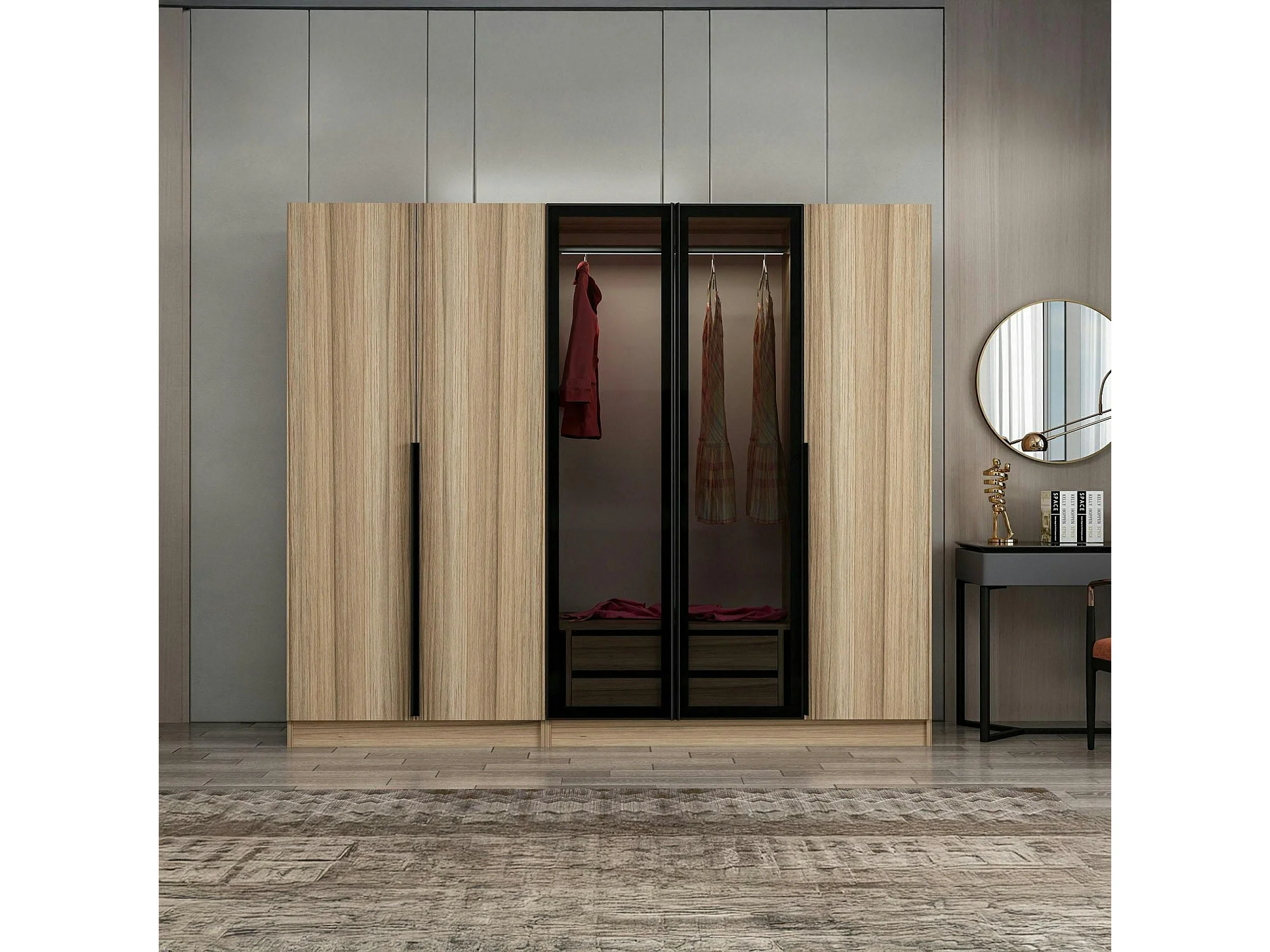 Armoire dressing design effet bois 2 portes vitrées BYRON