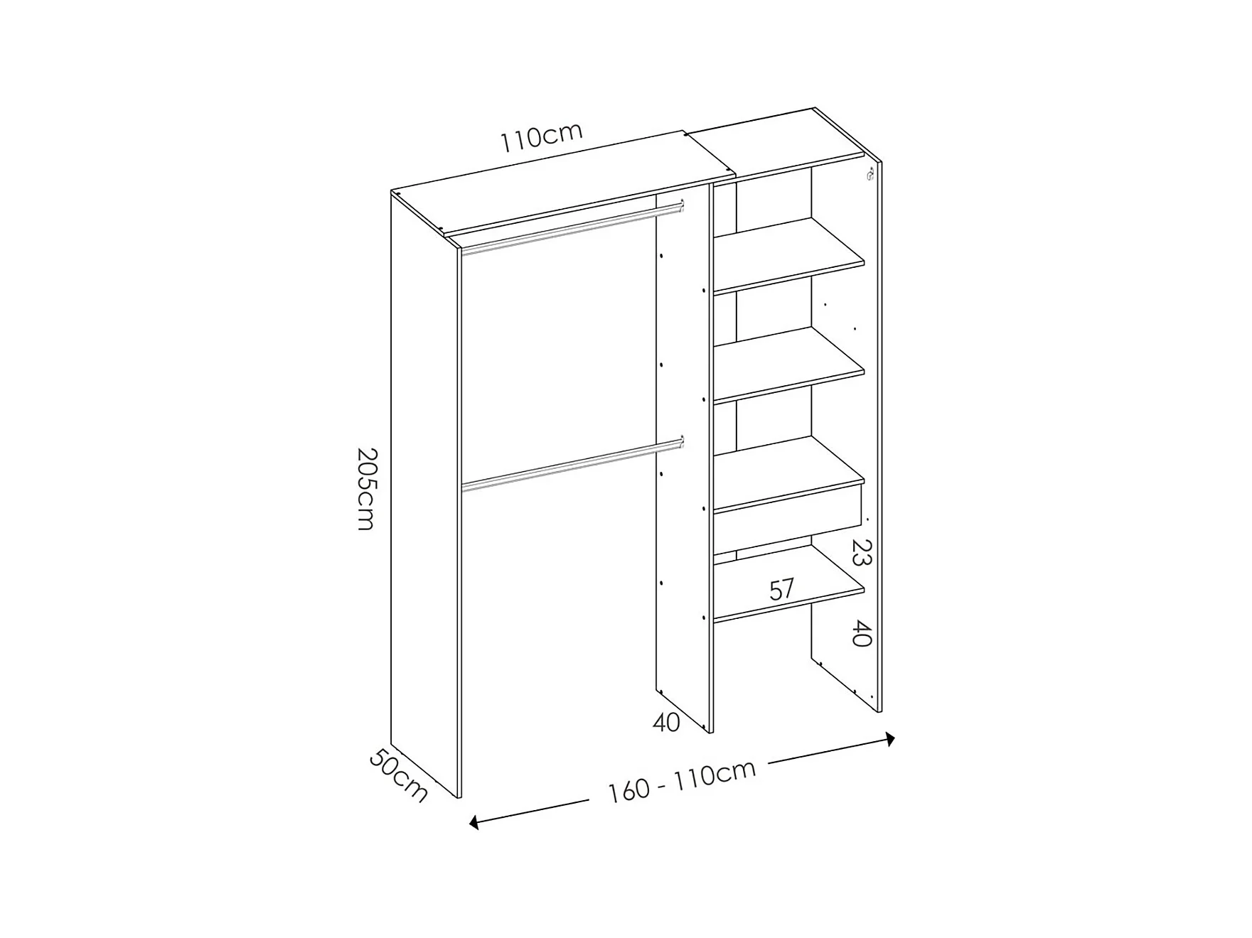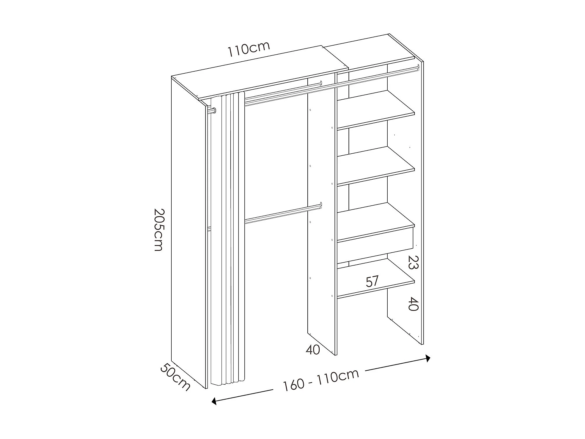 Armoire dressing en bois mélaminé avec penderies, 1 tiroir et 1 rideau coloris chêne naturel, graphite - Longueur 160 x Profondeur 50 x Hauteur 205 cm