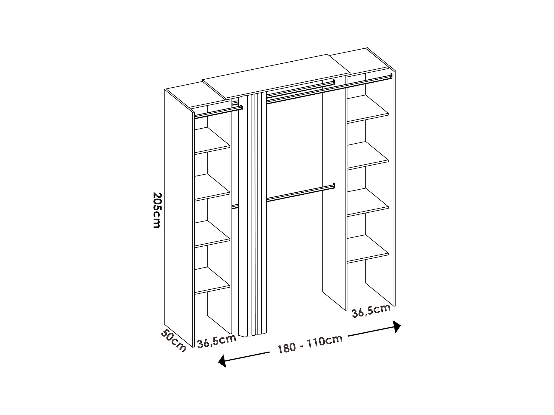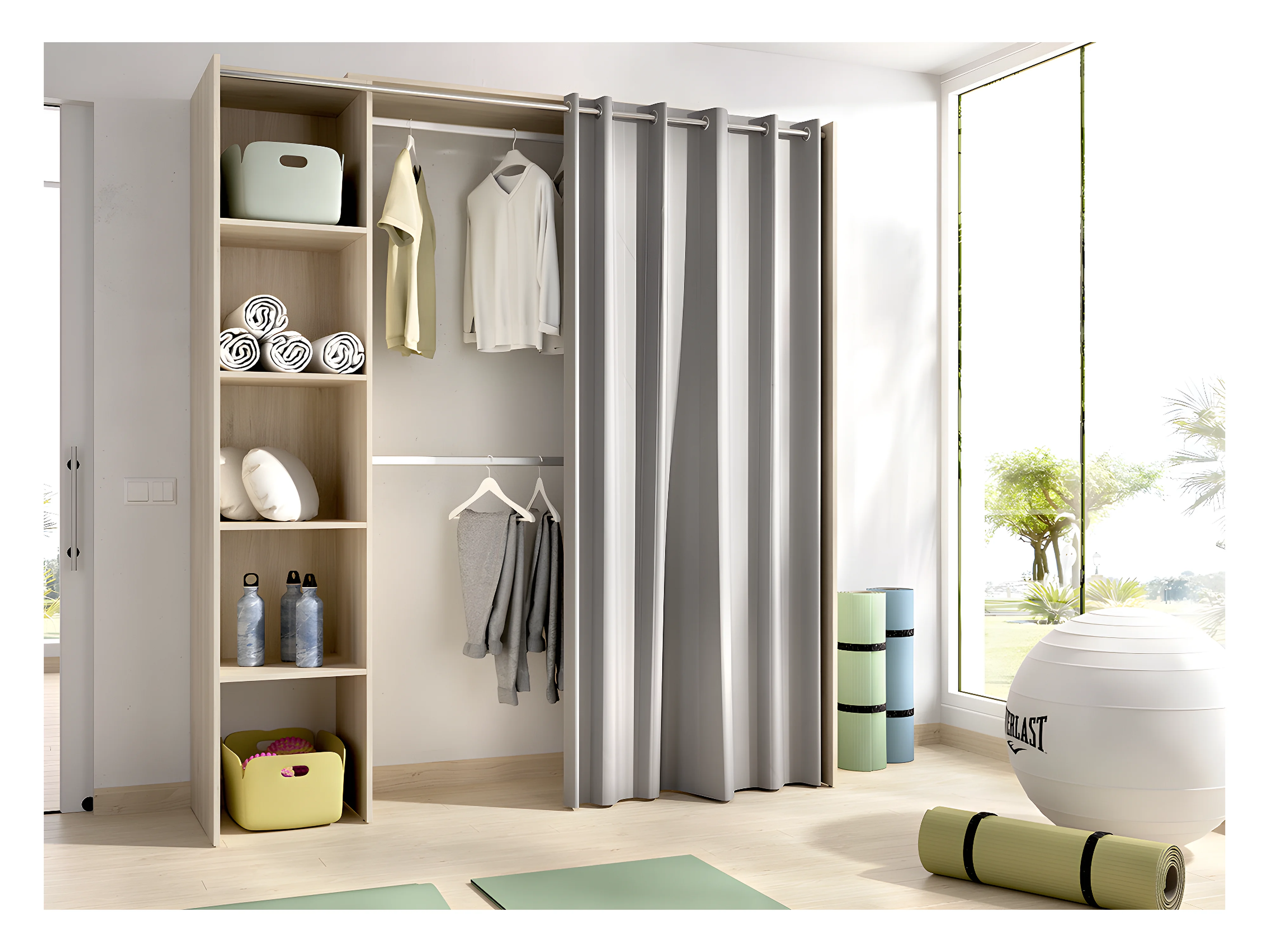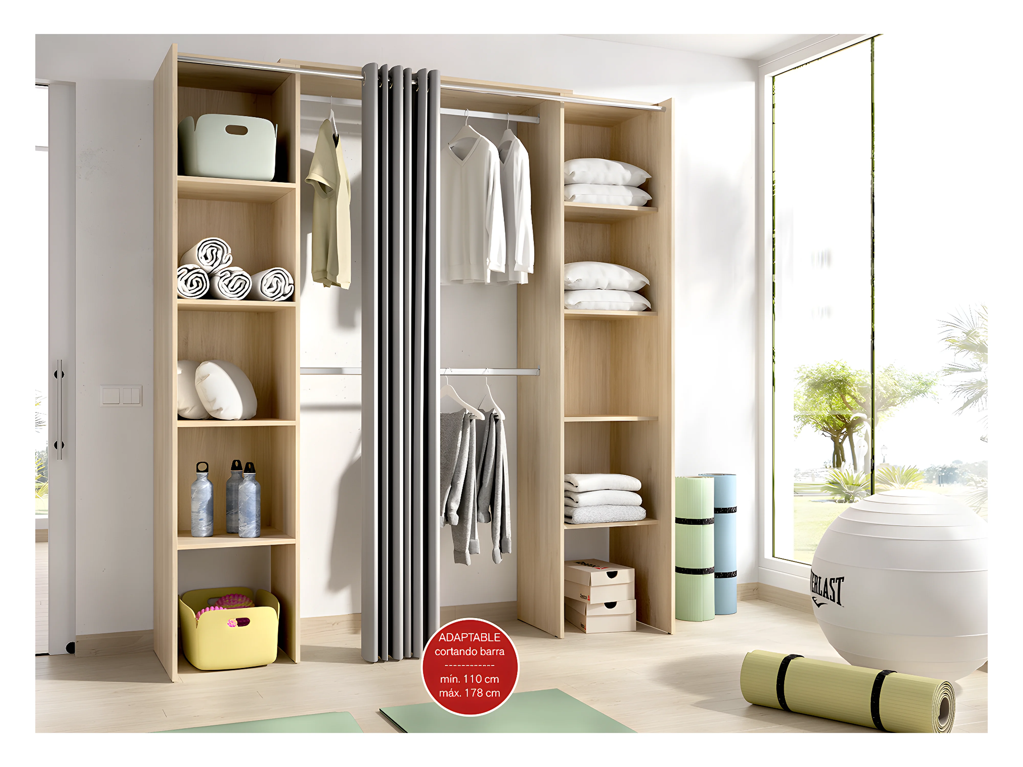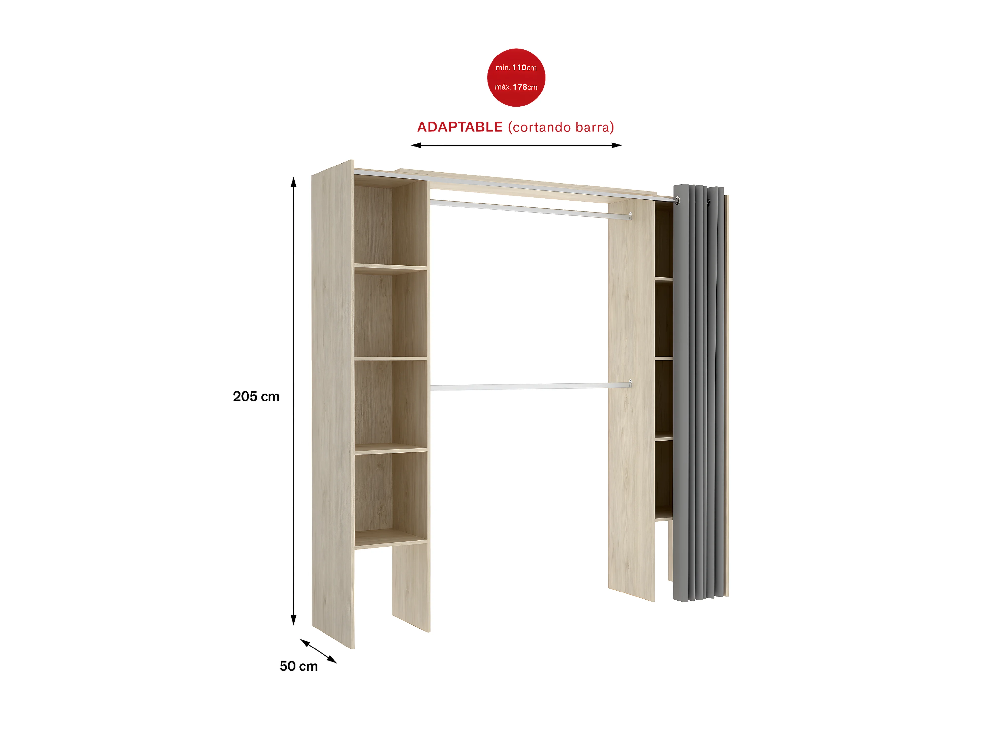 Armoire dressing extensible coloris chêne naturel avec rideau - Longueur 180 x Profondeur 50 x Hauteur 205 cm