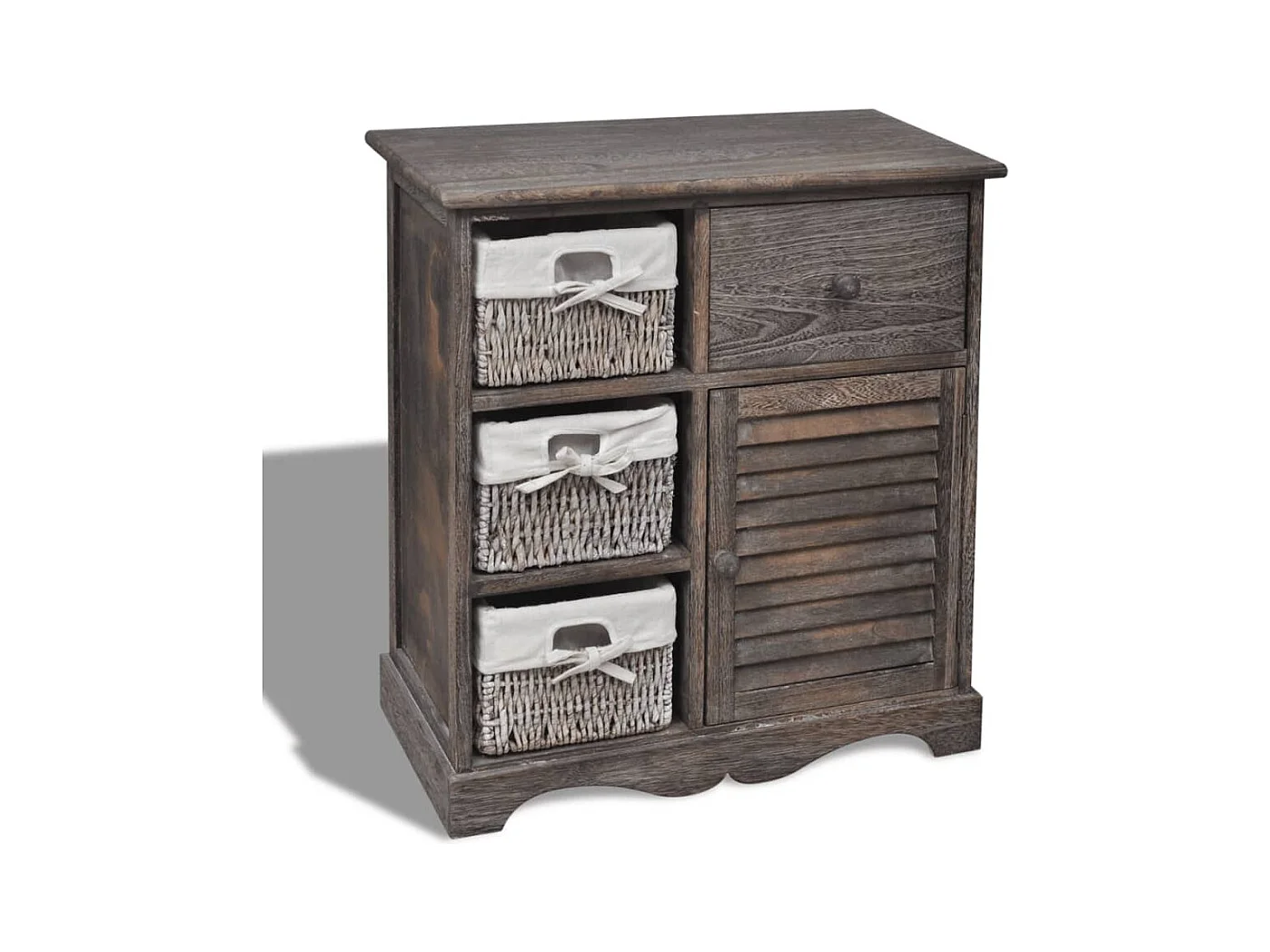 Armoire en bois 3 paniers gauches en tissage Marron FR68695