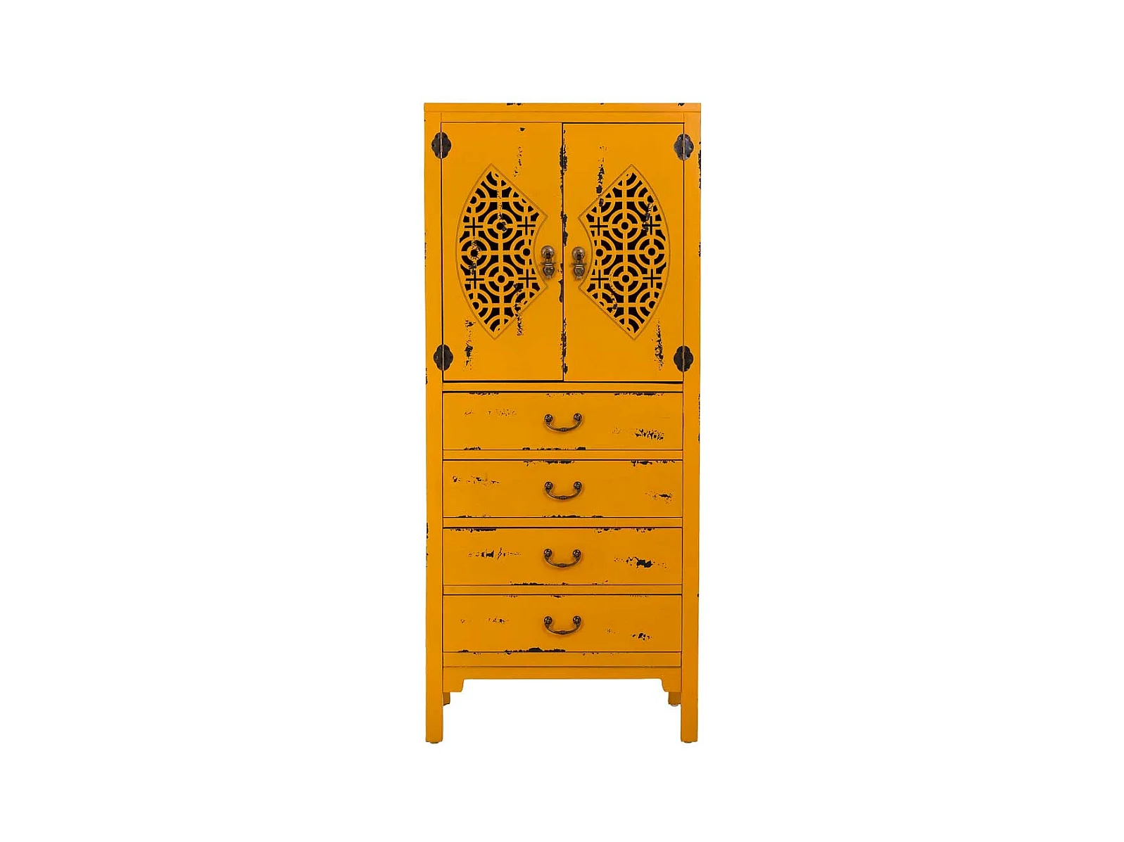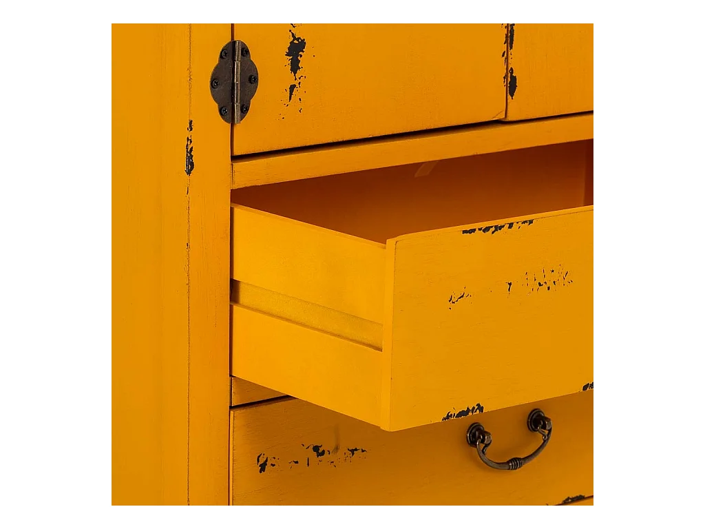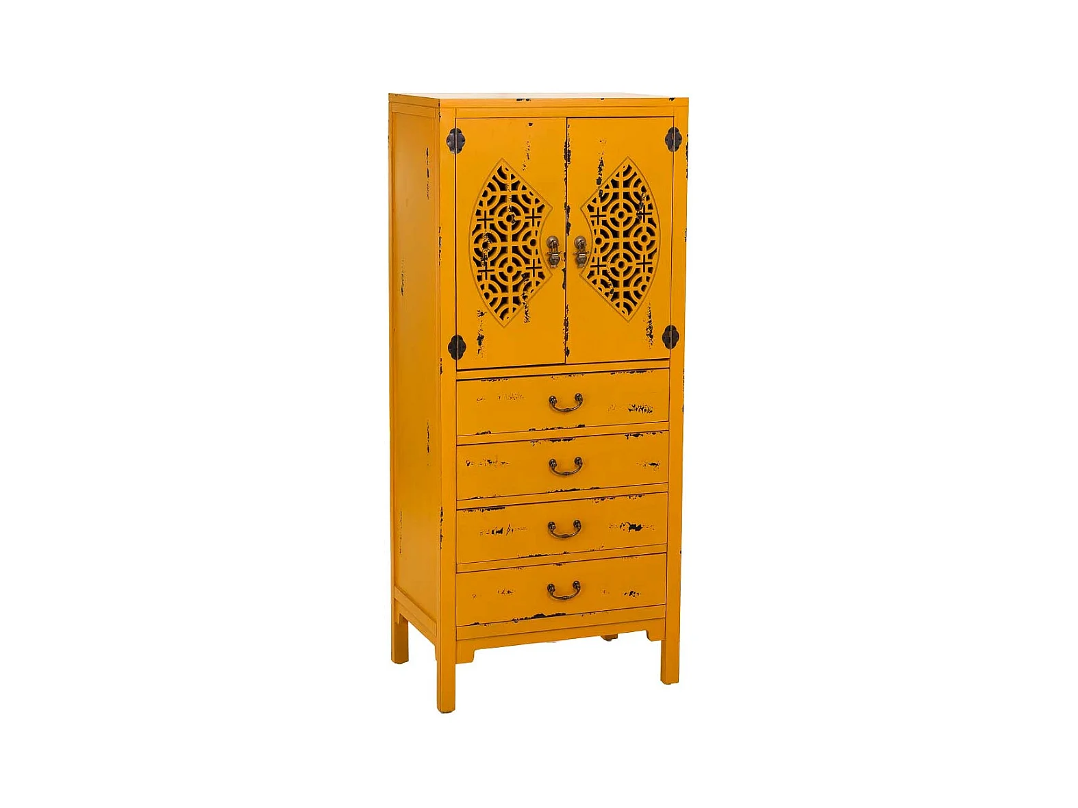 Armoire en bois avec 4 tiroirs et 2 portes jaune 60x40x140h cm