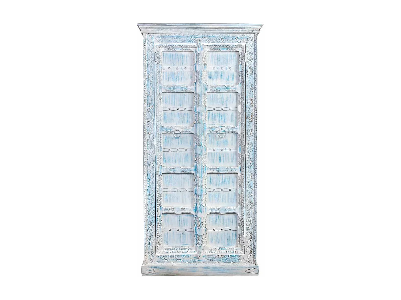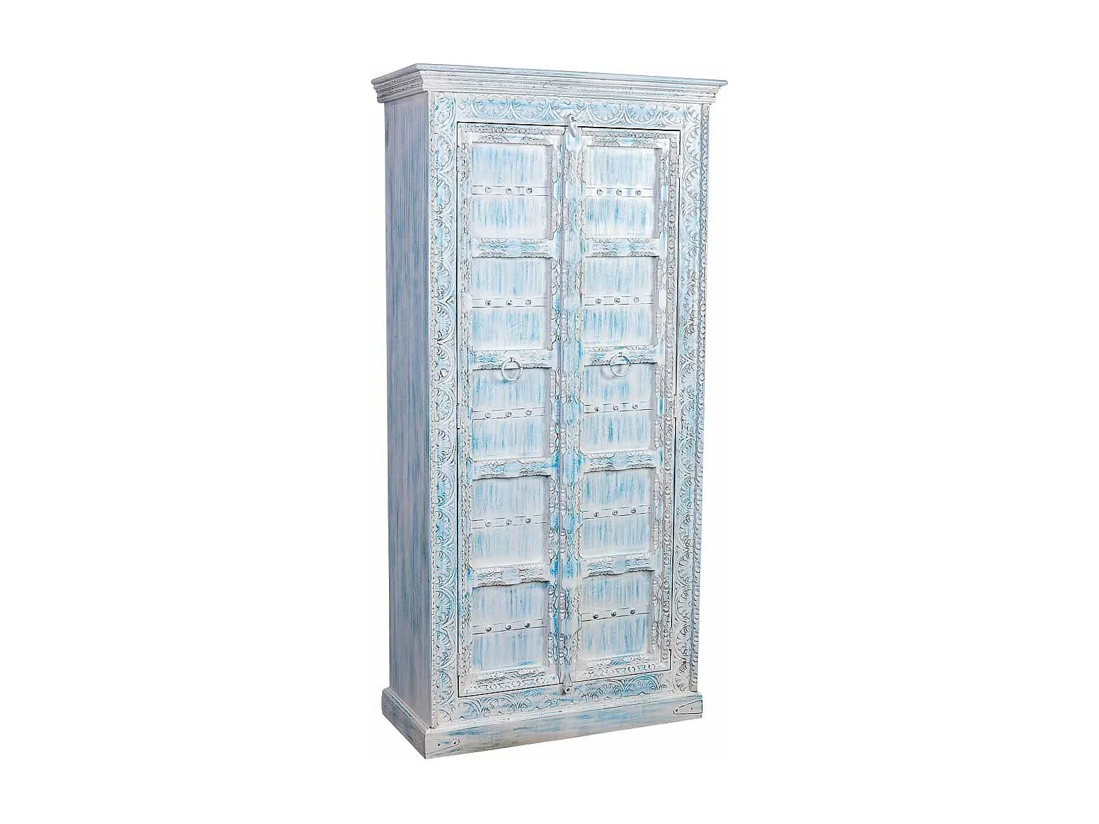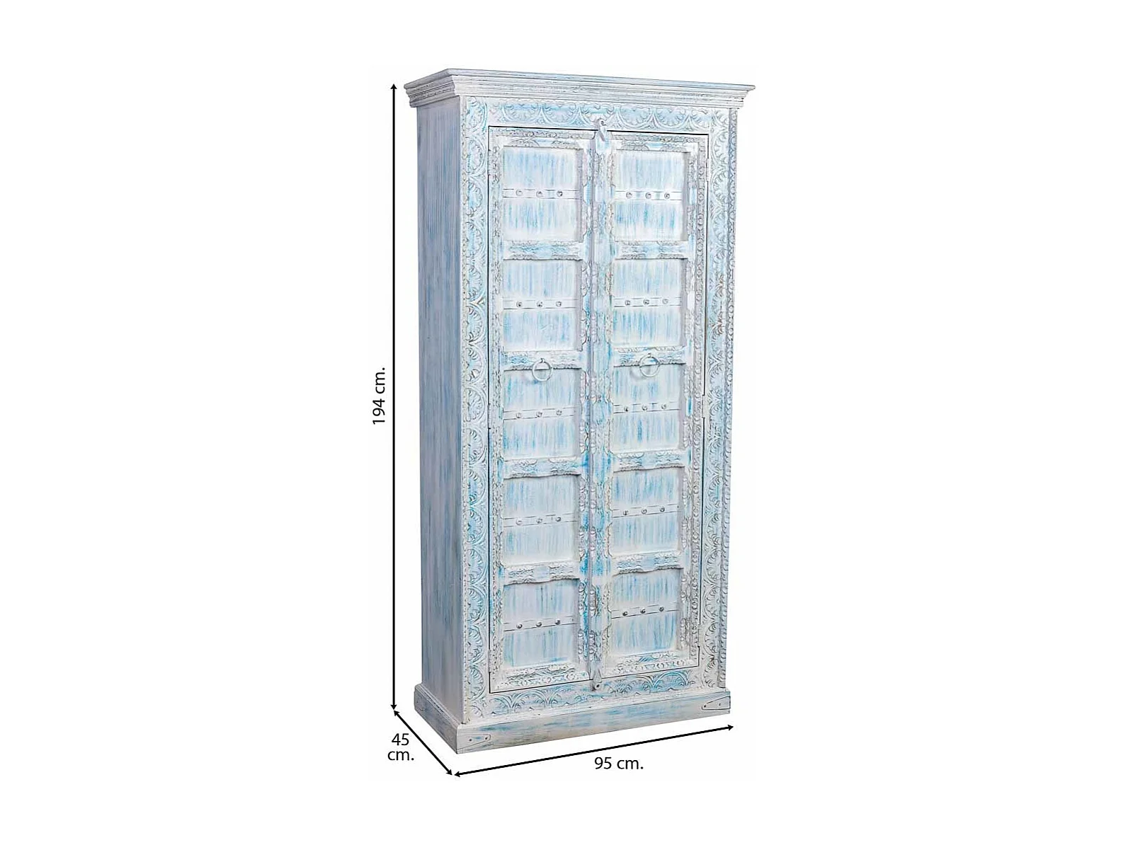 Armoire en bois sculpté avec finition bleu antique, 95x45x194h cm