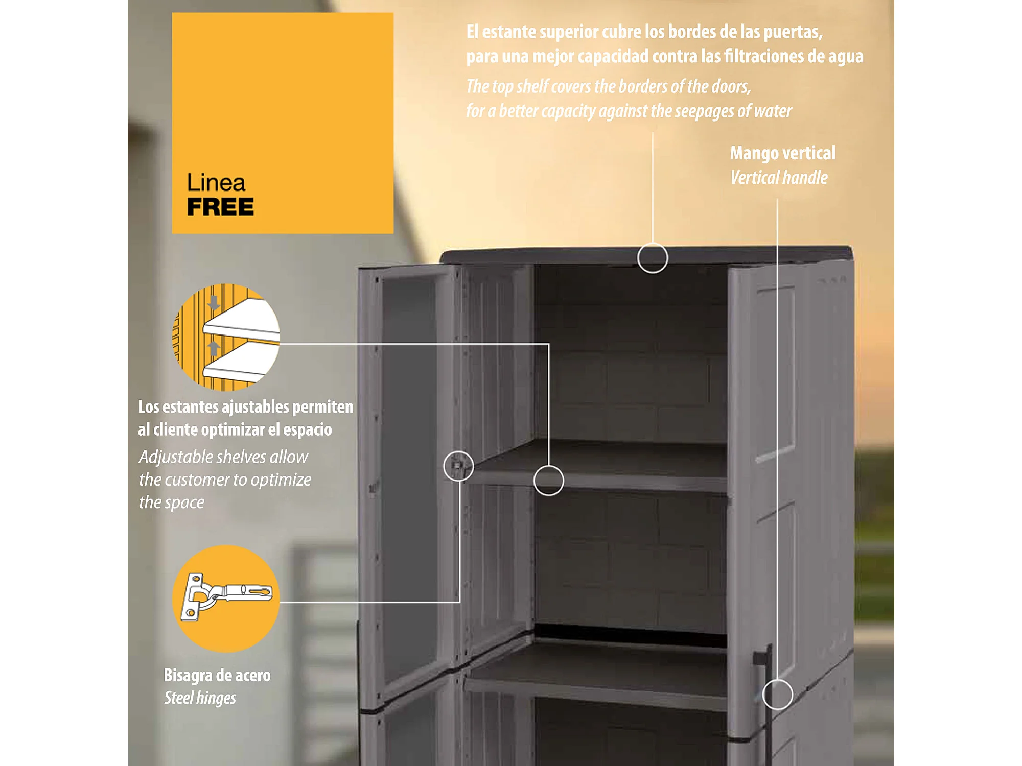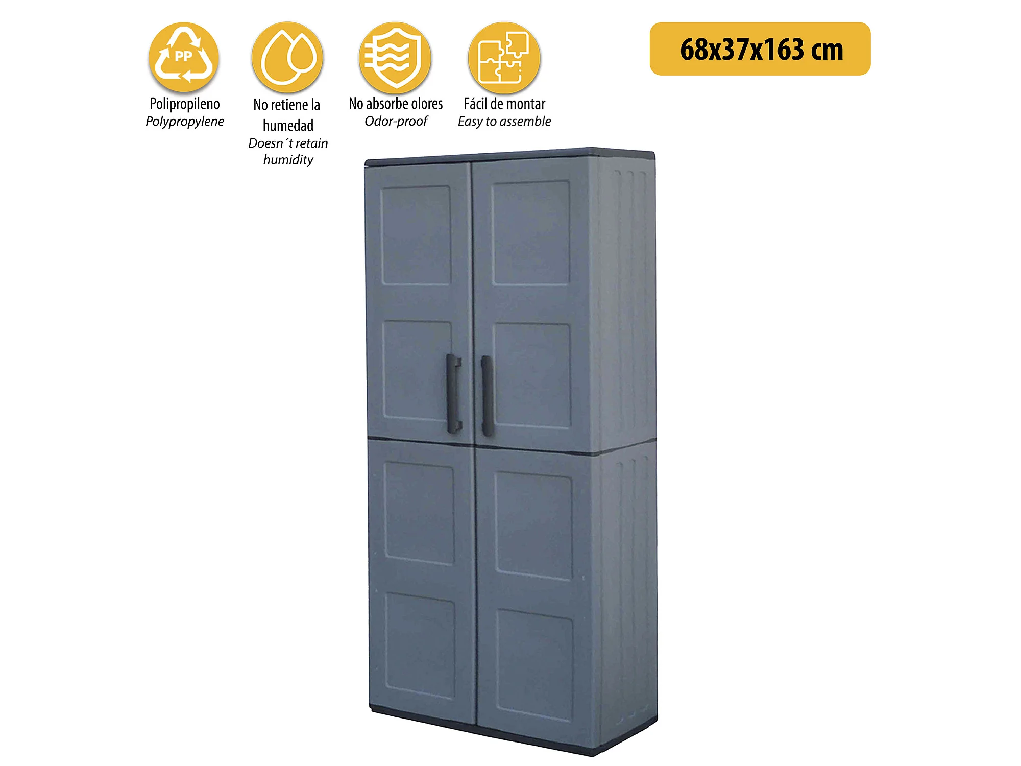 Armoire en matériau écologique et recyclable, avec charnières en acier et étagères réglables, 680 x 370 x 1630 mm