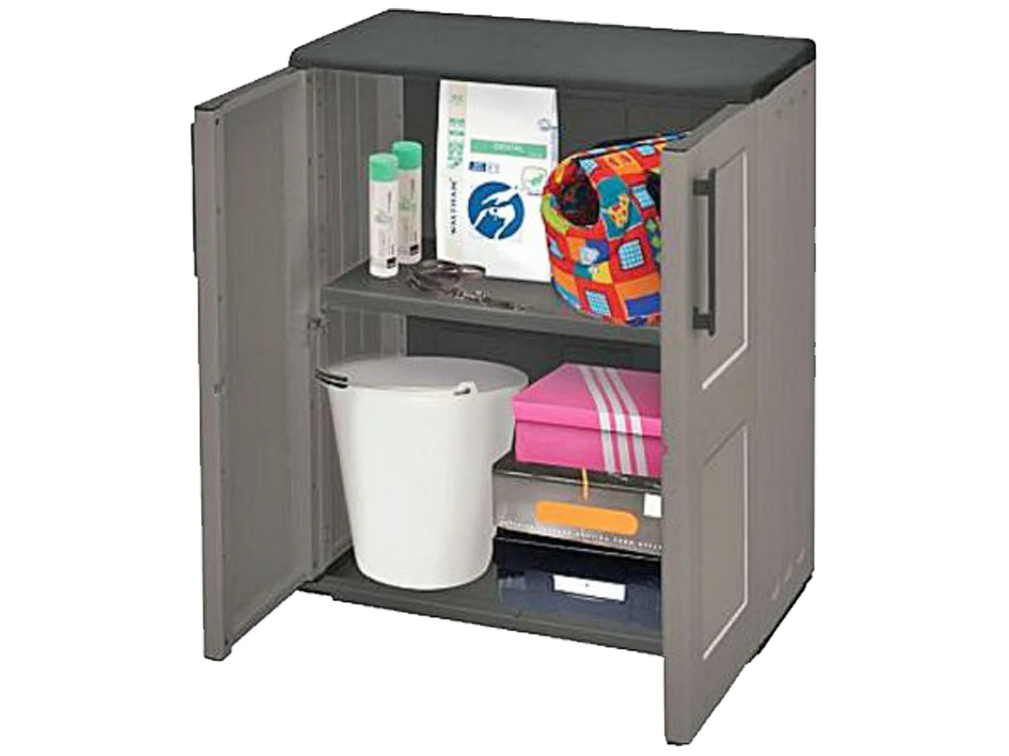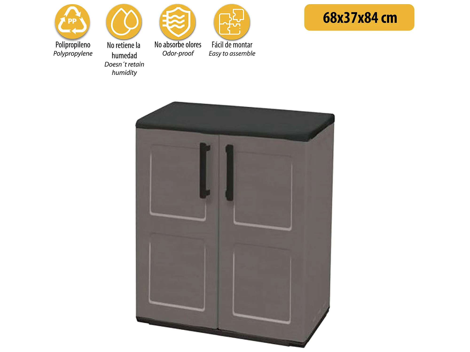Armoire à hauteur moyenne en polypropylène, matériau écologique recyclable et durable, est équipé de charnières en acier et d'étagère réglable