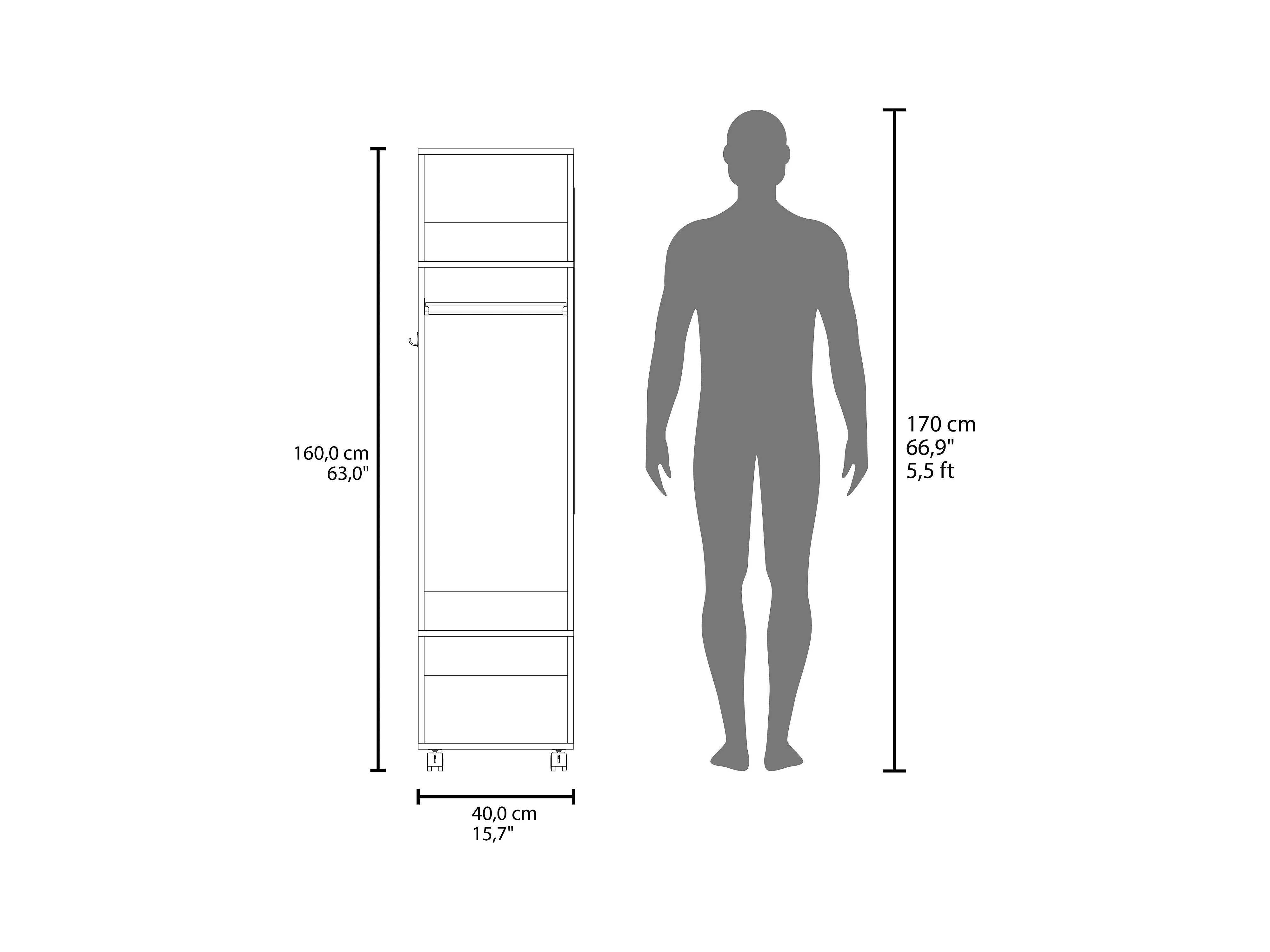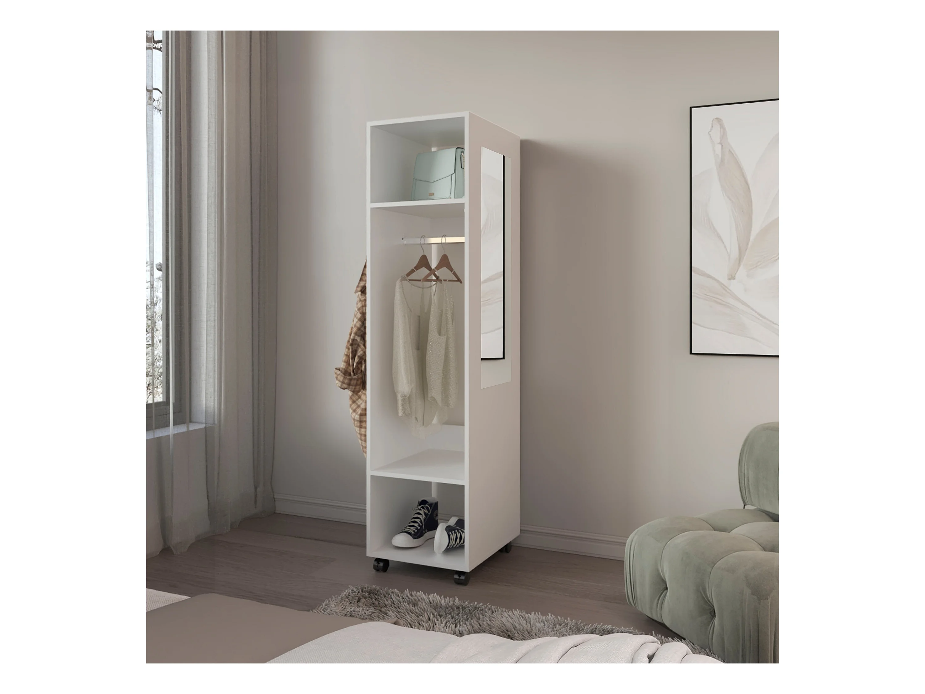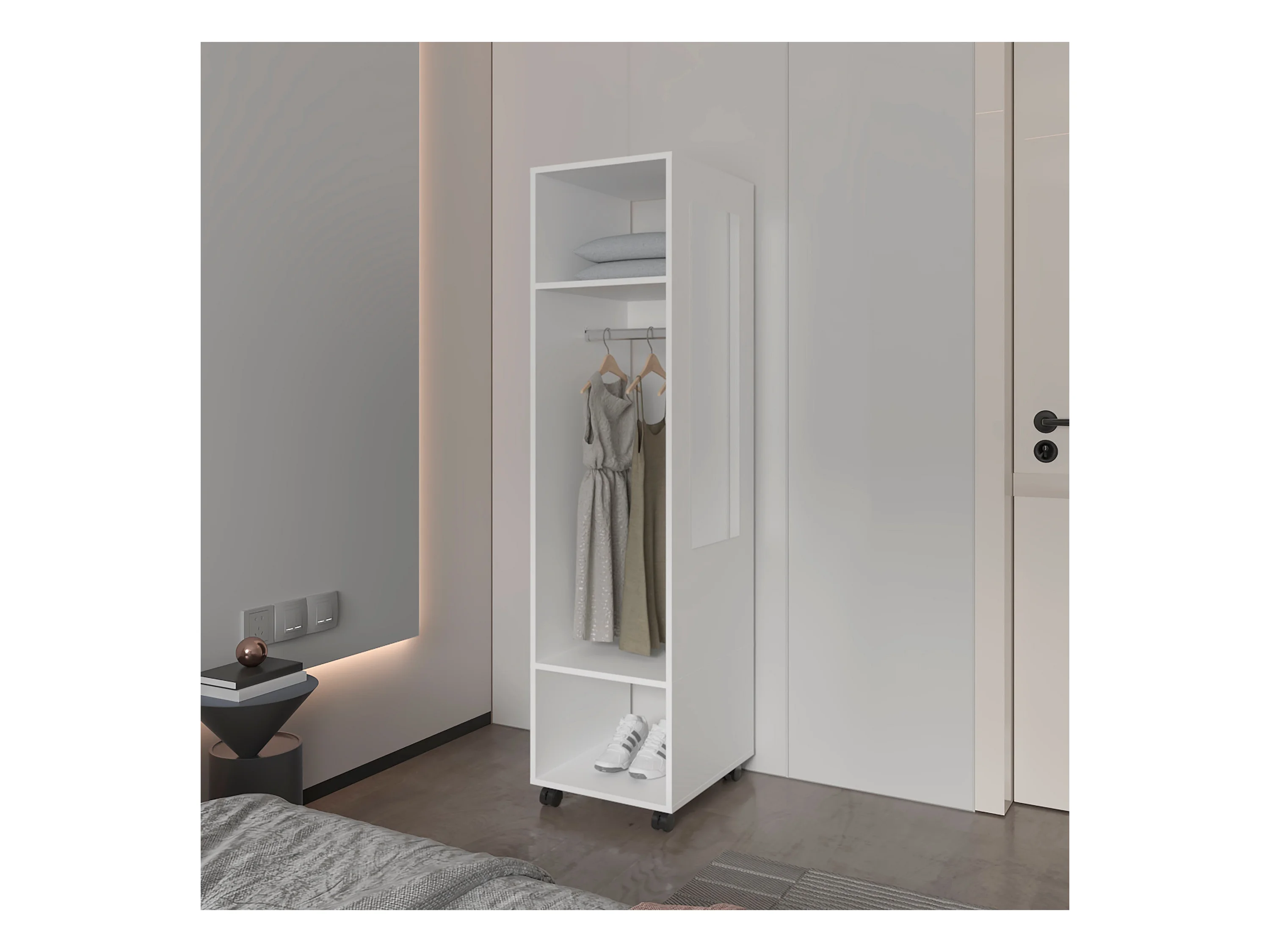 Armoire en mélamine Kronospan, trois étagères, tringle à vêtements et miroir inclus, Blanc, 160 cm X 40 cm X 48 cm
