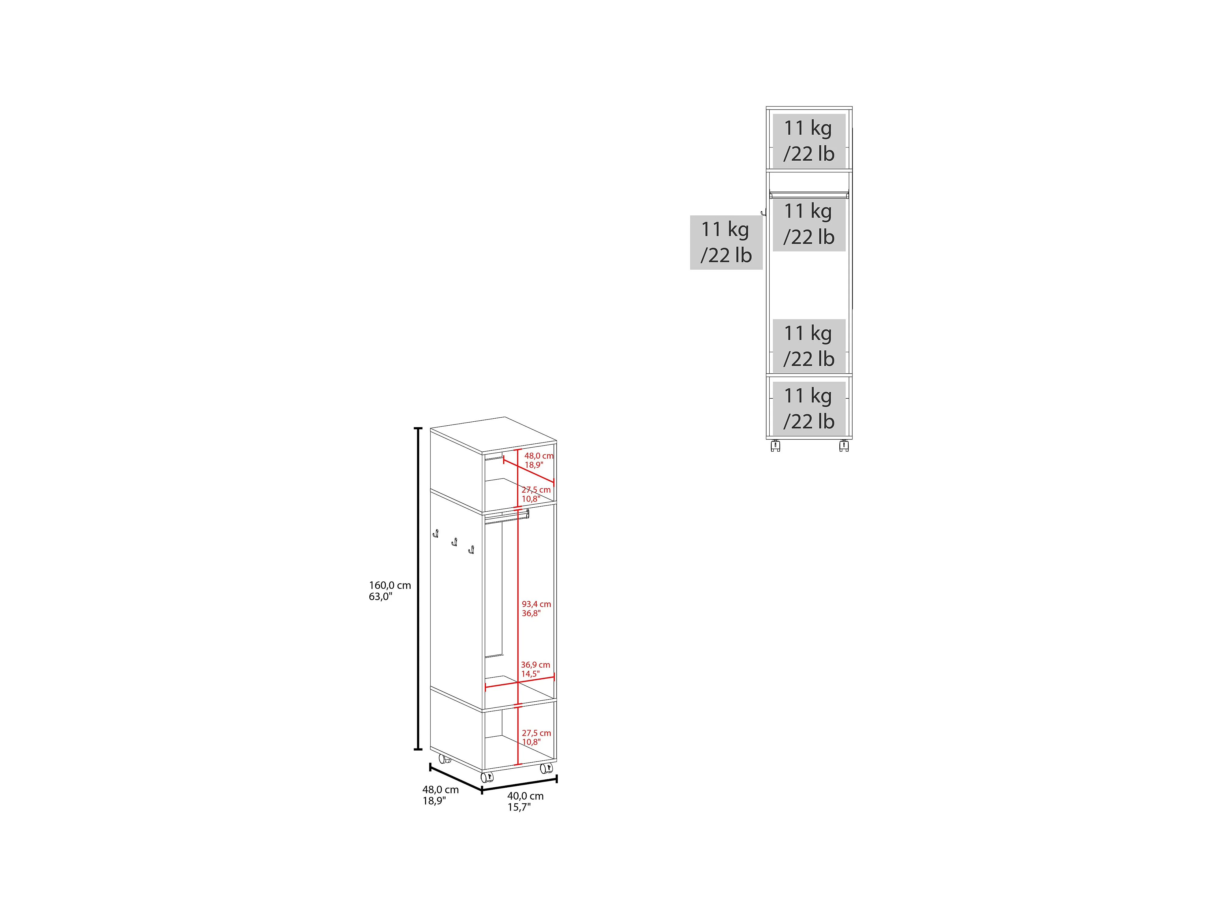 Armoire Dober, Structure pour dressing, Cintre ouvert, 160x50h205 cm, Blanc et Gris