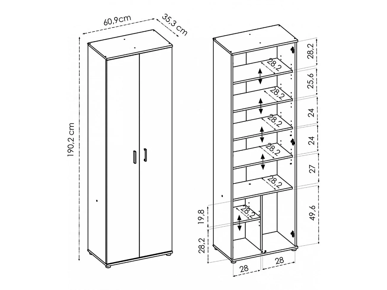Armoire en panneaux de particules mélaminés coloris chêne naturel - Longueur 60.9 x Profondeur 35.3 x Hauteur 190.2 cm