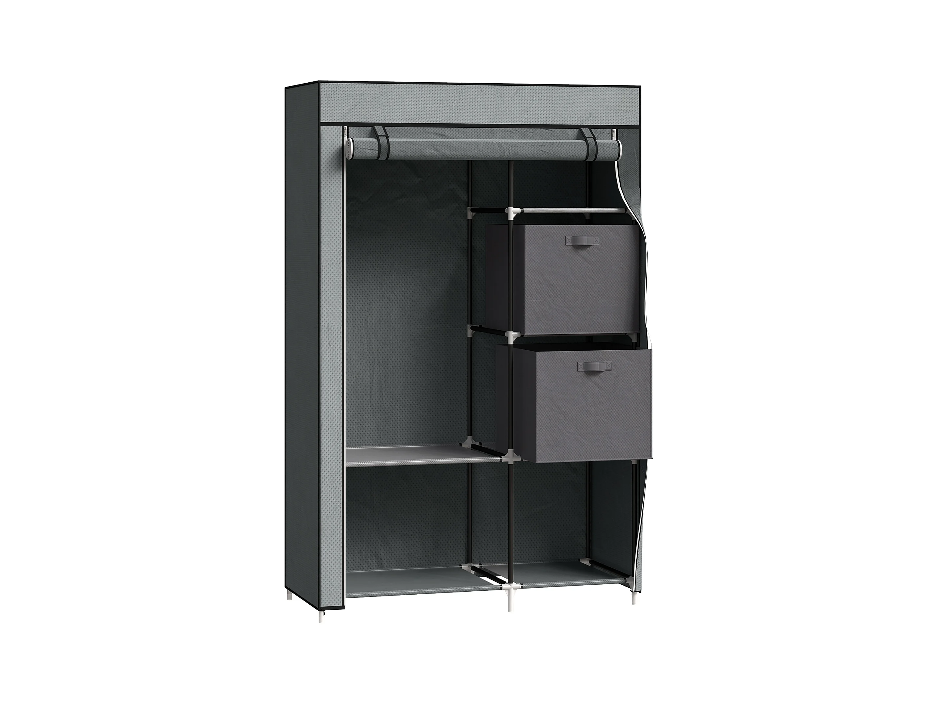 Armoire en tissu avec penderie et étagères, design compact, acier et tissu, gris foncé (102x42.5x162.5 cm)