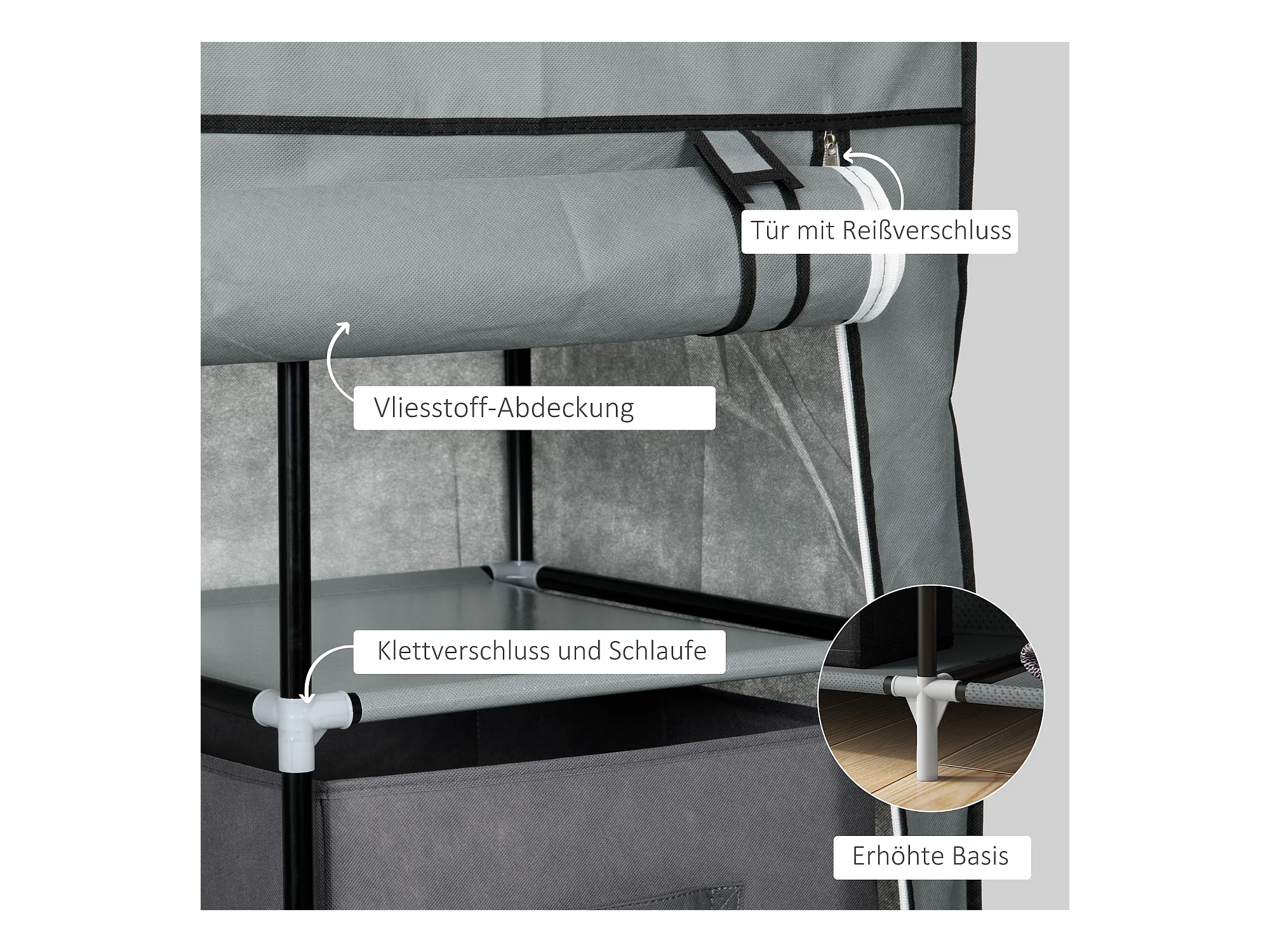 Armoire textile pliable avec 5 compartiments et tringle, structure acier, gris clair (83x42.5x162.5cm)