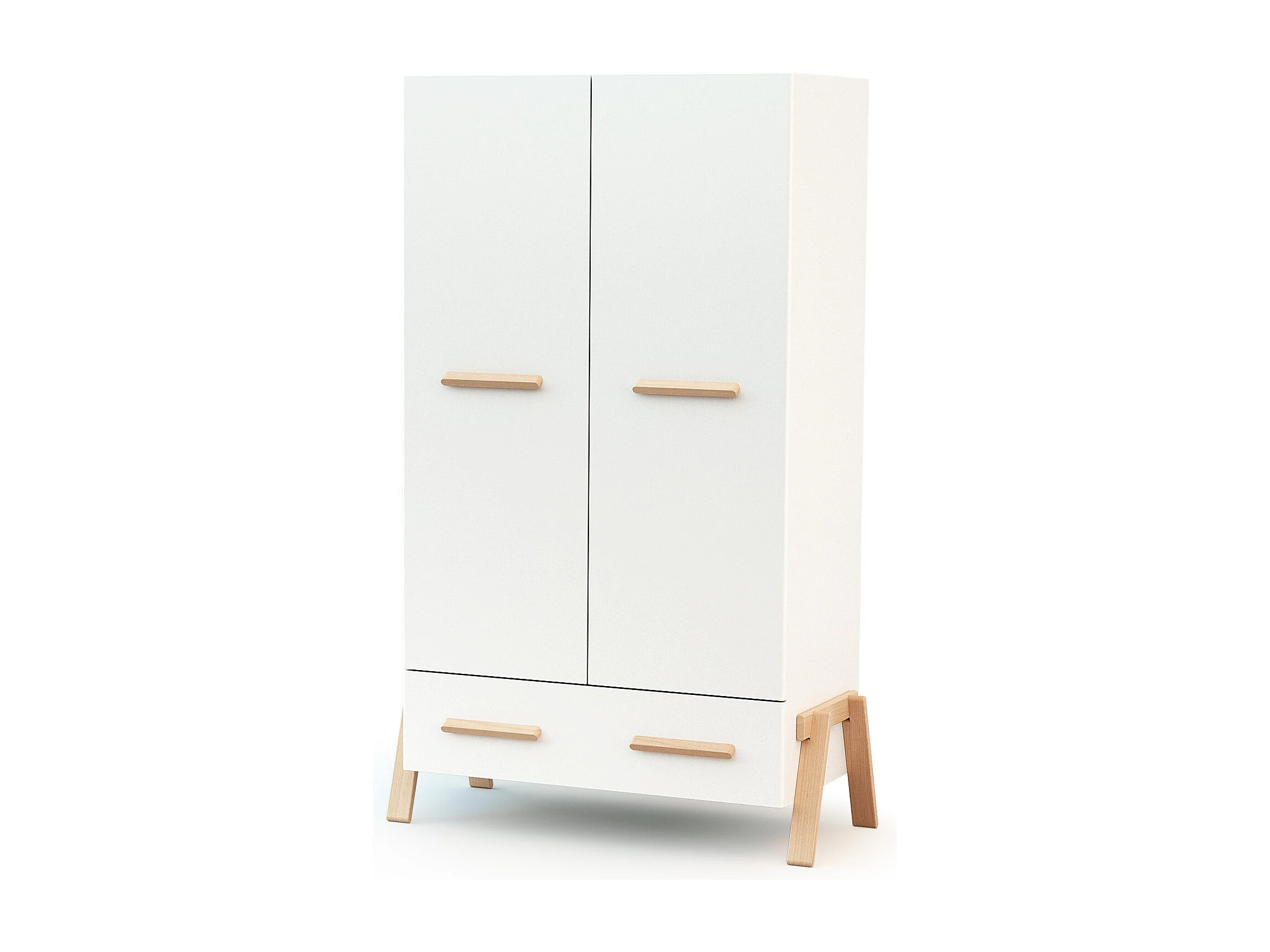 Armoire enfant 2 portes en bois CANAILLE Blanc et Hêtre 108 x 53 x176 cm