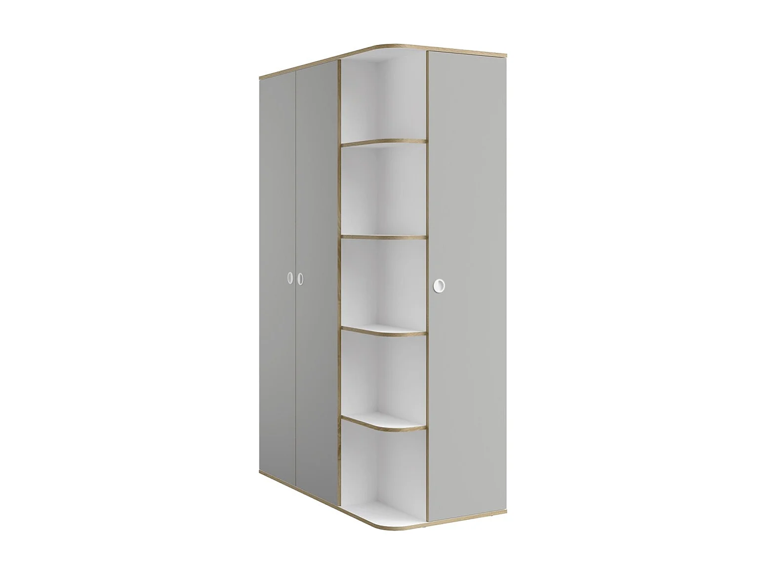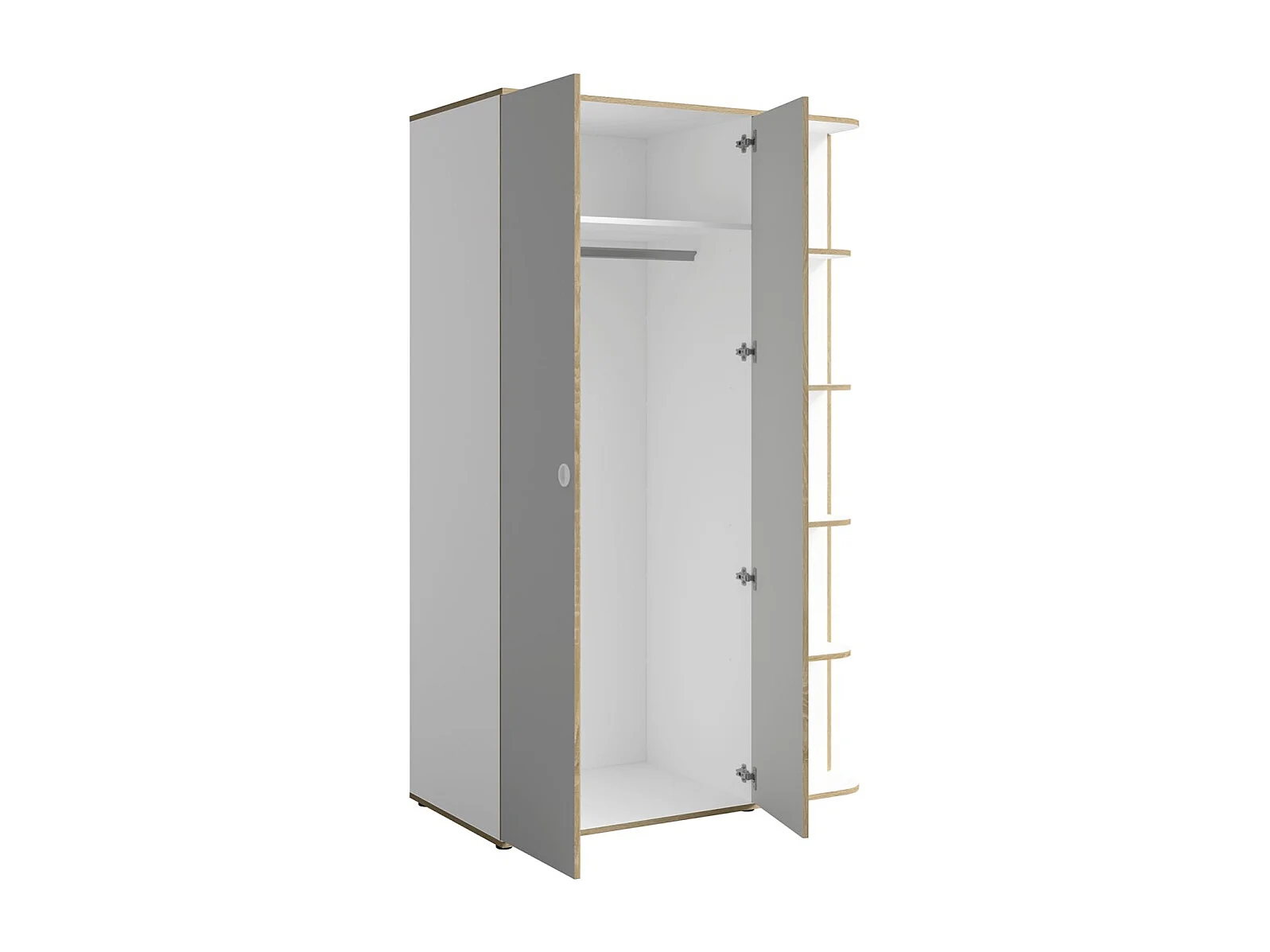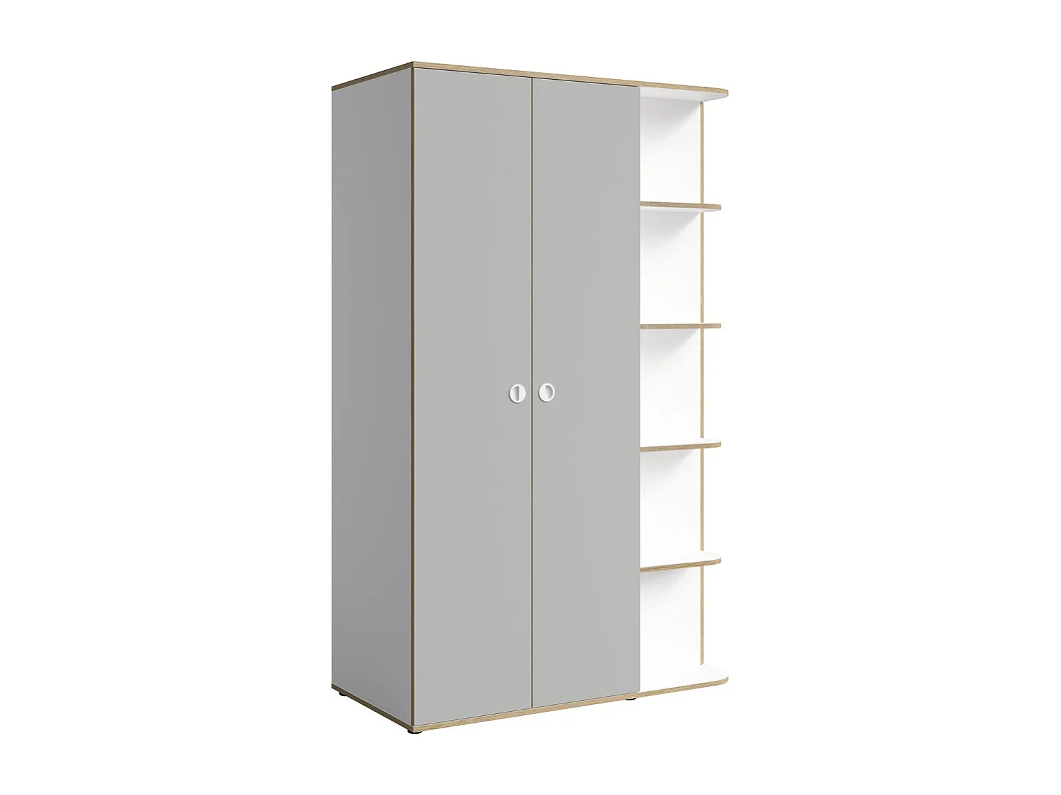 Armoire enfant ELYO – 3 portes + bibliothèque en façade – Gris & chêne