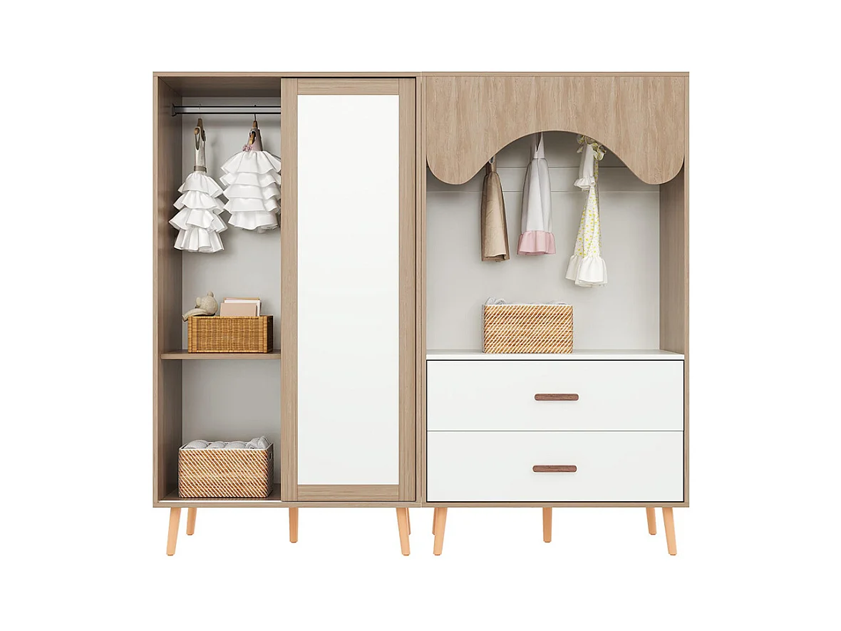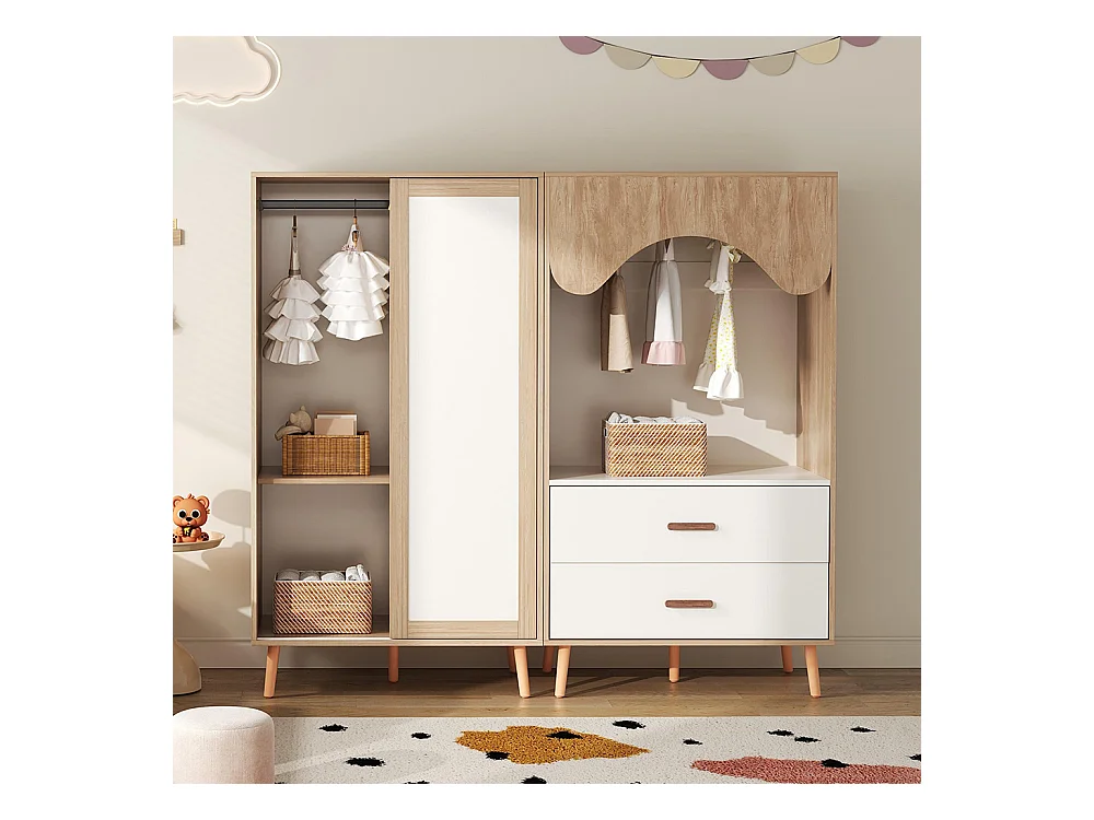 Armoire enfants portes coulissantes armoire ouverte ensemble combiné enfant blanc bois naturel