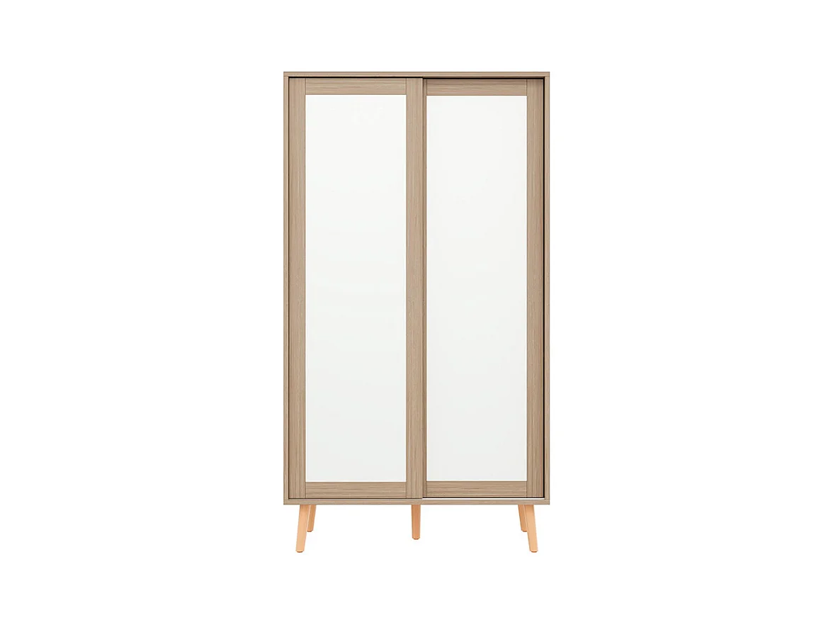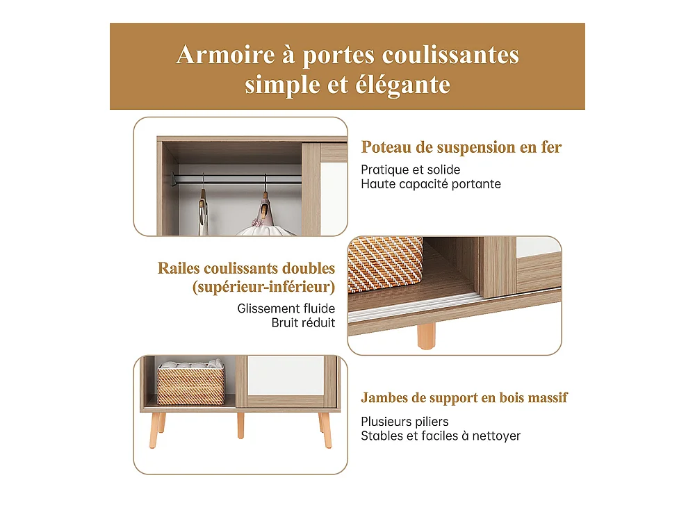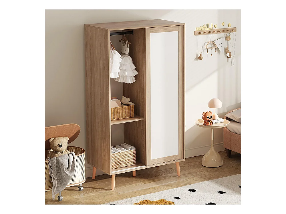 Armoire enfants portes coulissantes tringle vêtements aggloméré pieds bois massif blanc bois naturel