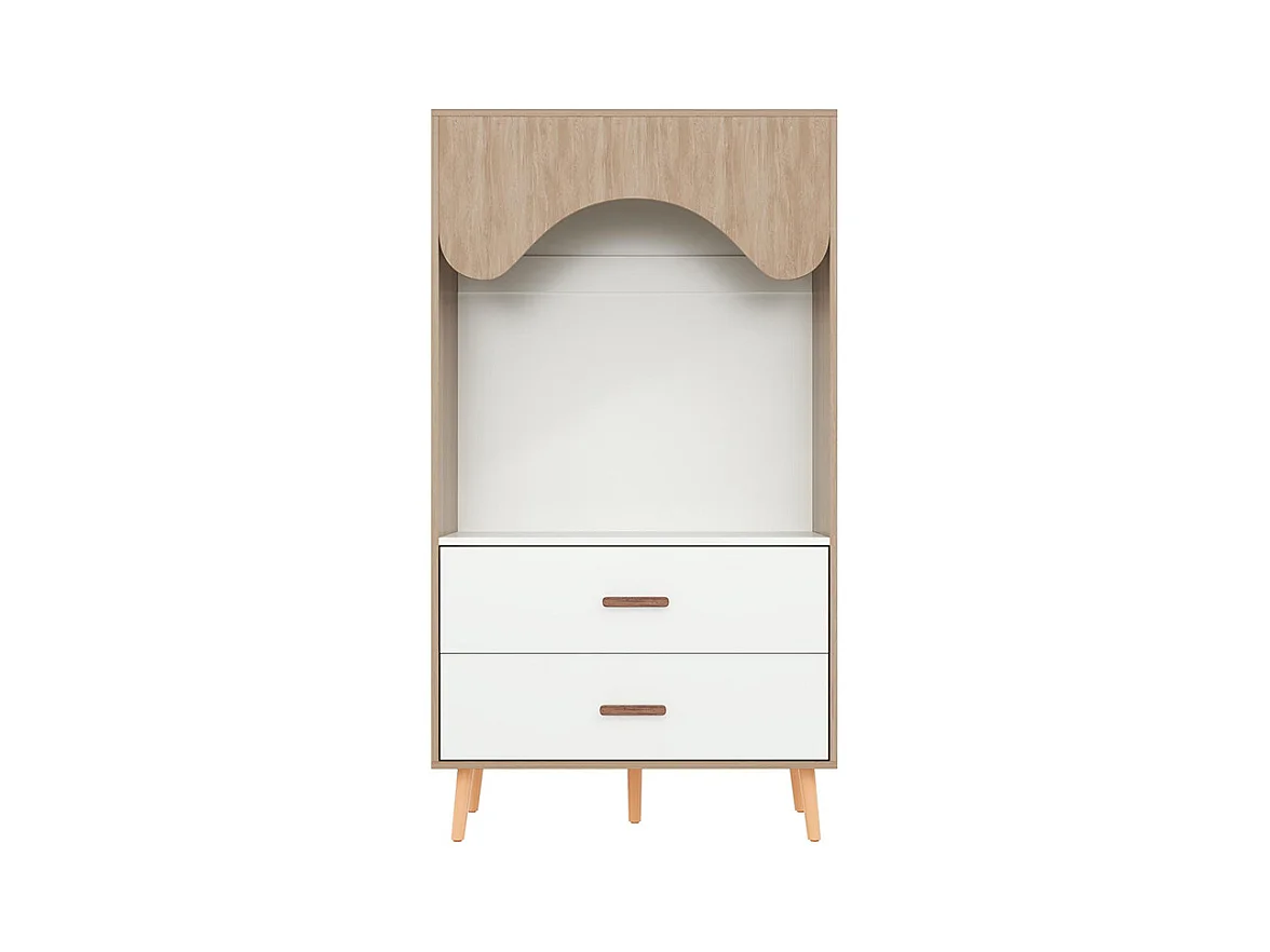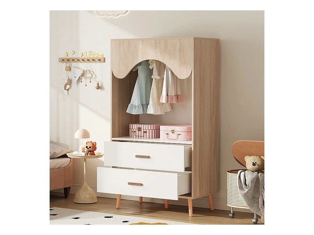 Armoire enfants tringle vêtements tiroirs armoire ouverte poignées bois aggloméré blanc bois naturel
