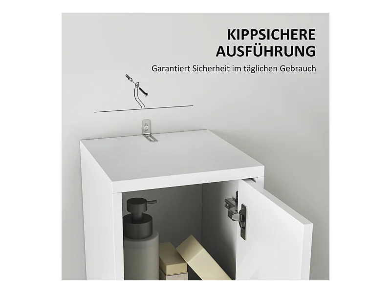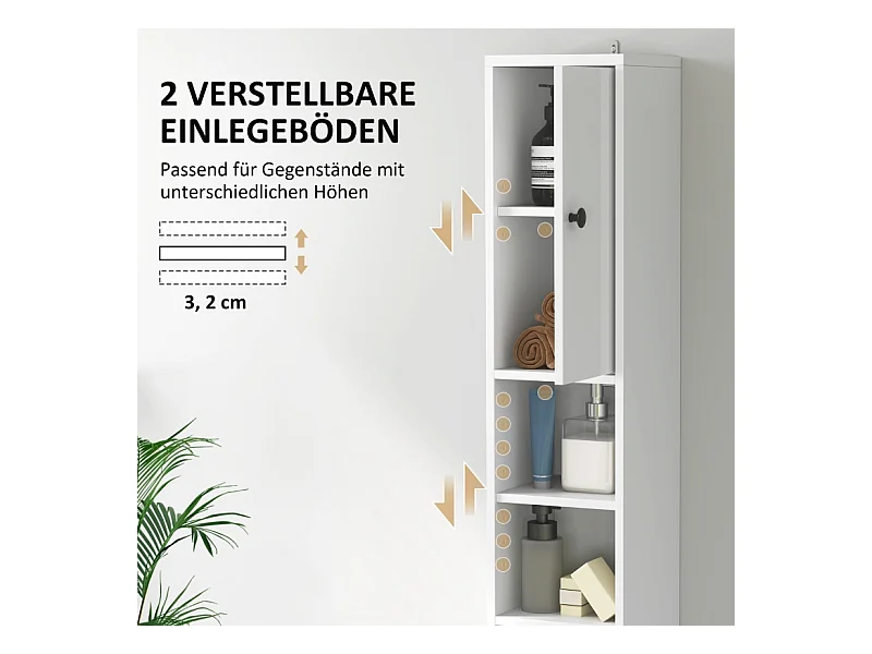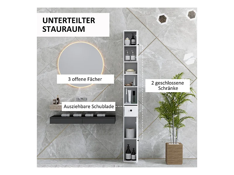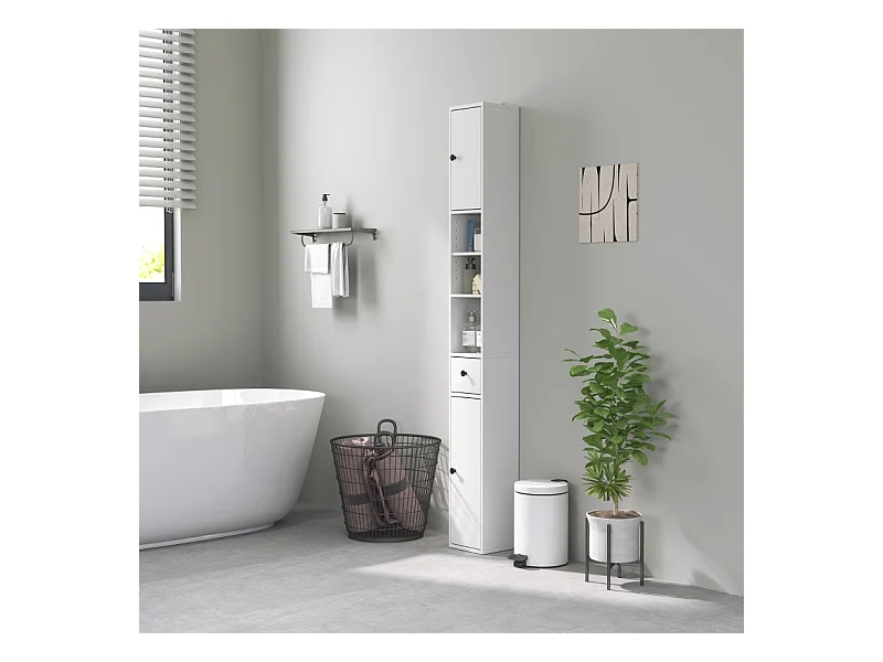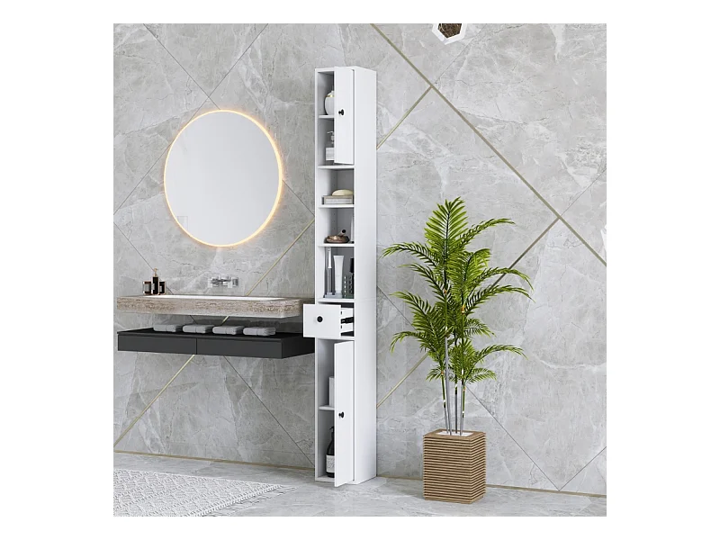Meuble de salle de bain étroit, avec 3 étagères et 1 tiroir, bois, blanc (34x24x170.5 cm)