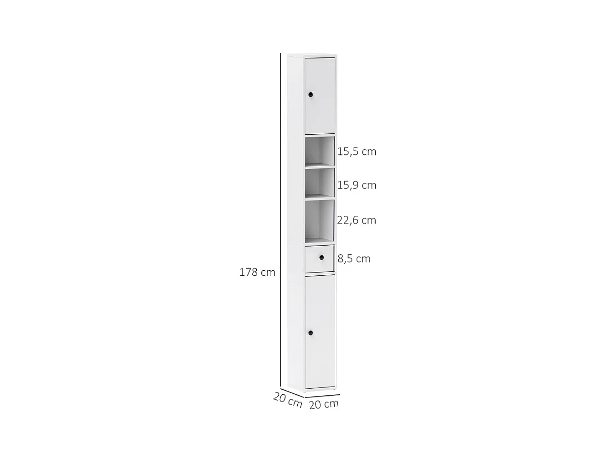 Armoire étroite avec tiroir et étagère réglable, en bois, blanc (20x20x178 cm)