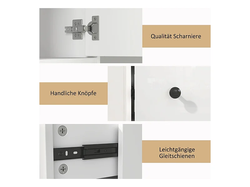 Armoire haute salle de bain avec 3 tiroirs et 2 niches ouvertes, MDF, blanc (30x30x142.4cm)