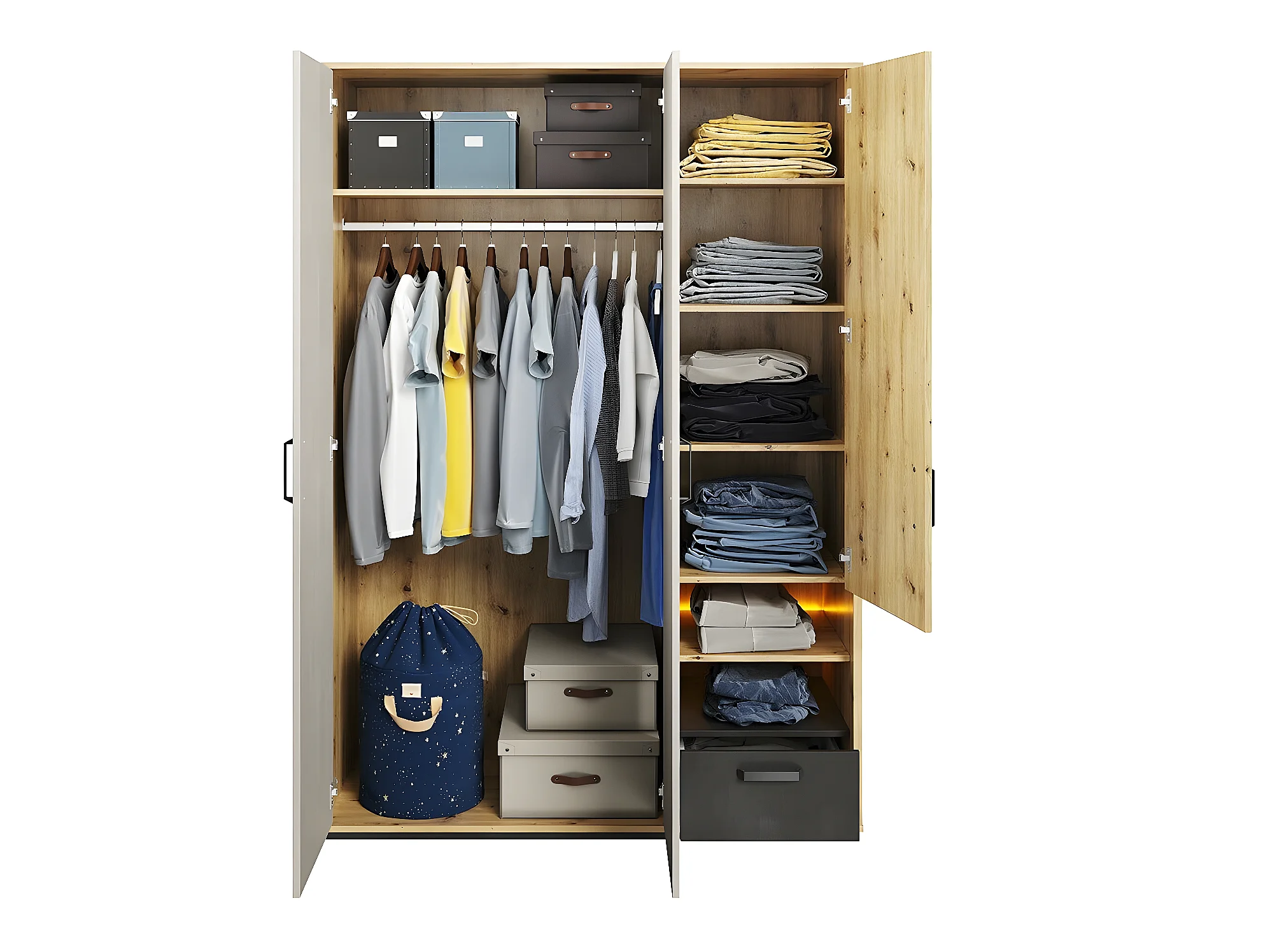 Armoire Orlveno 101, Noir|Chêne Artisan|Gris, 195x130x52cm, Nombre d'étagères: 6