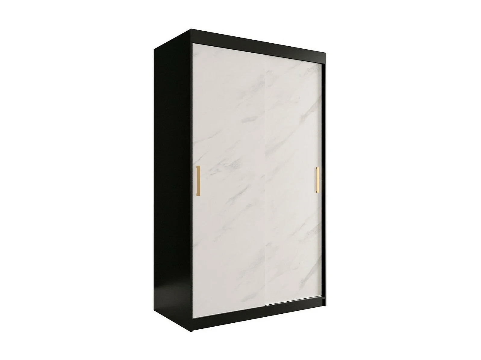 Armoire Hartford 247, Noir mat|Marbre blanc, 200x120x62cm, Portes d'armoire: Coulissantes