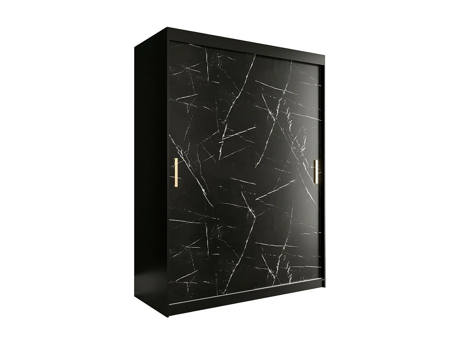 Armoire Hartford 248, Noir mat|Marbre noir, 200x150x62cm, Portes d'armoire: Coulissantes