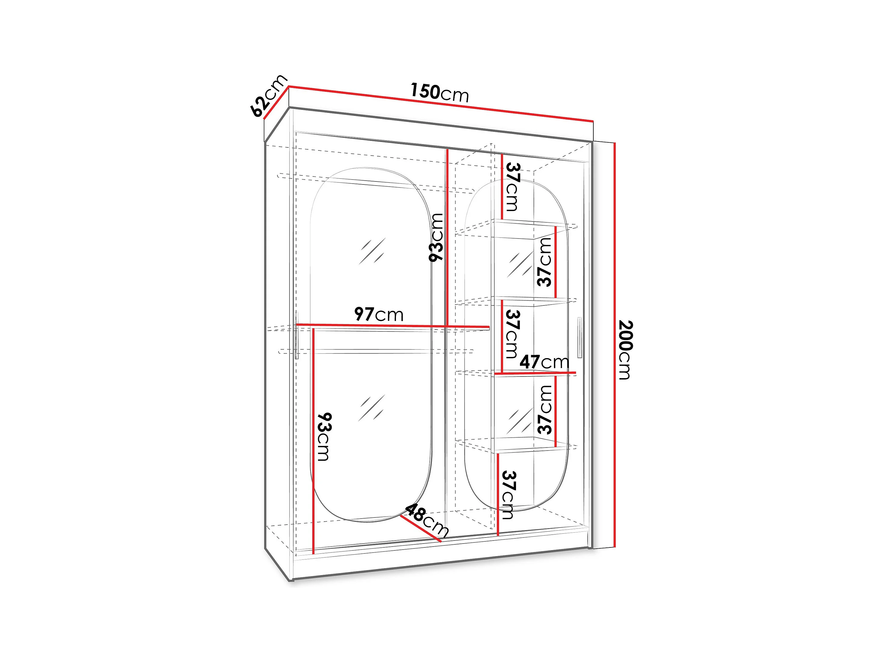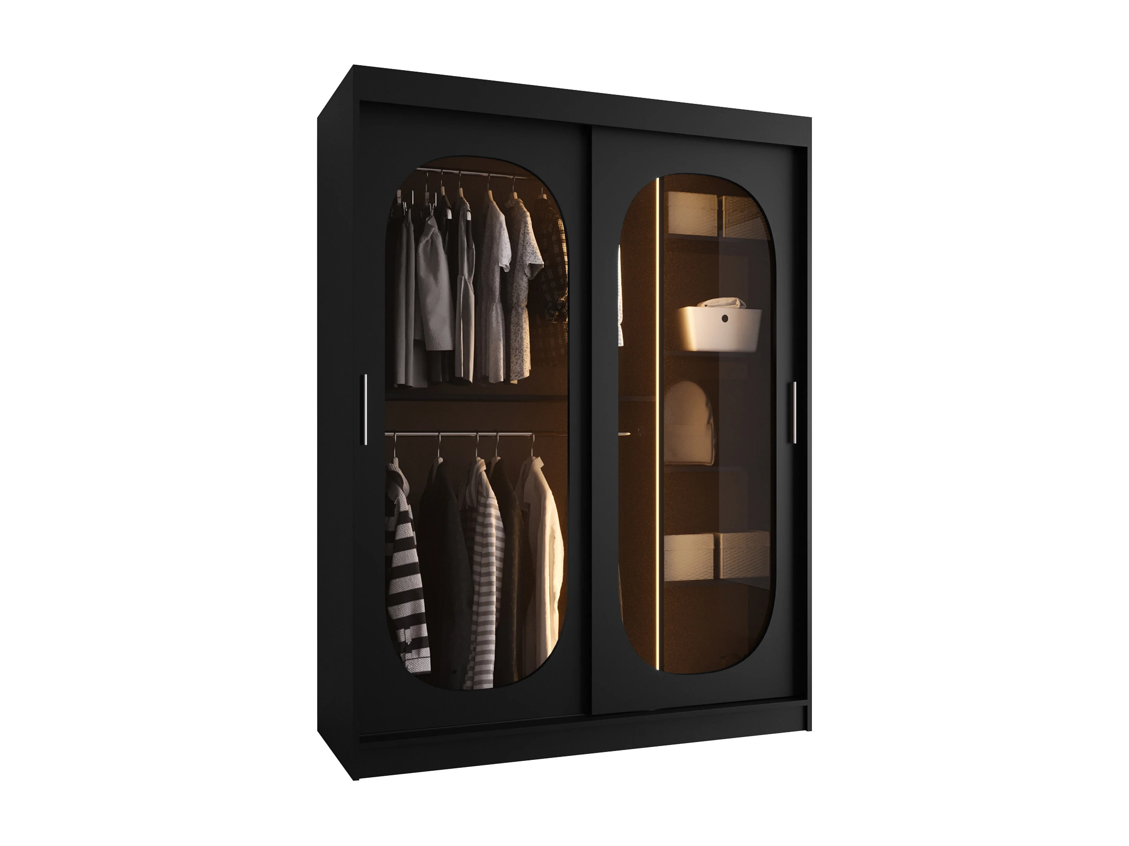 Armoire Hartford 519, Noir, 200x150x62cm, Portes d'armoire: Coulissantes