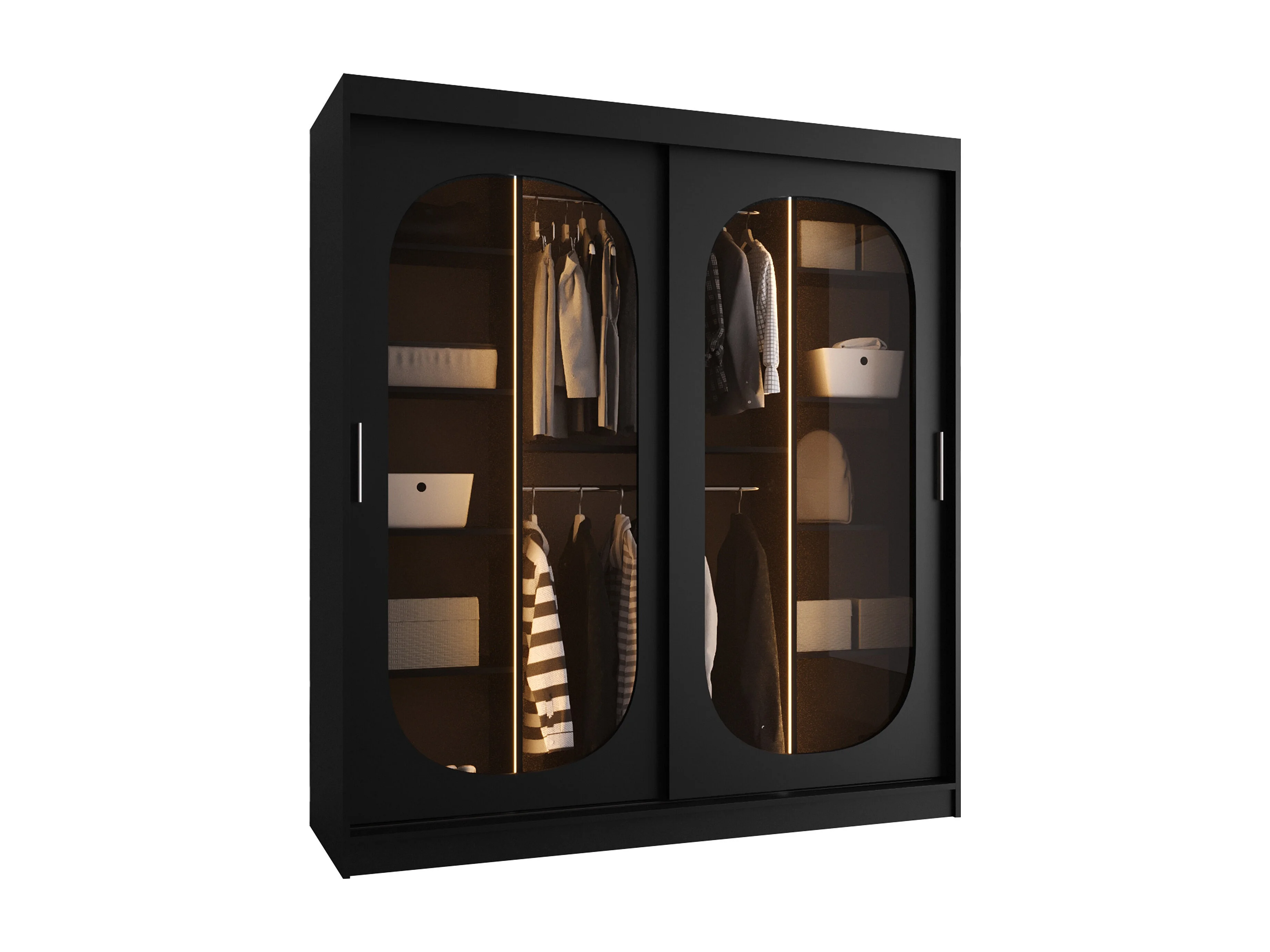Armoire Hartford 520, Noir, 200x180x62cm, Portes d'armoire: Coulissantes
