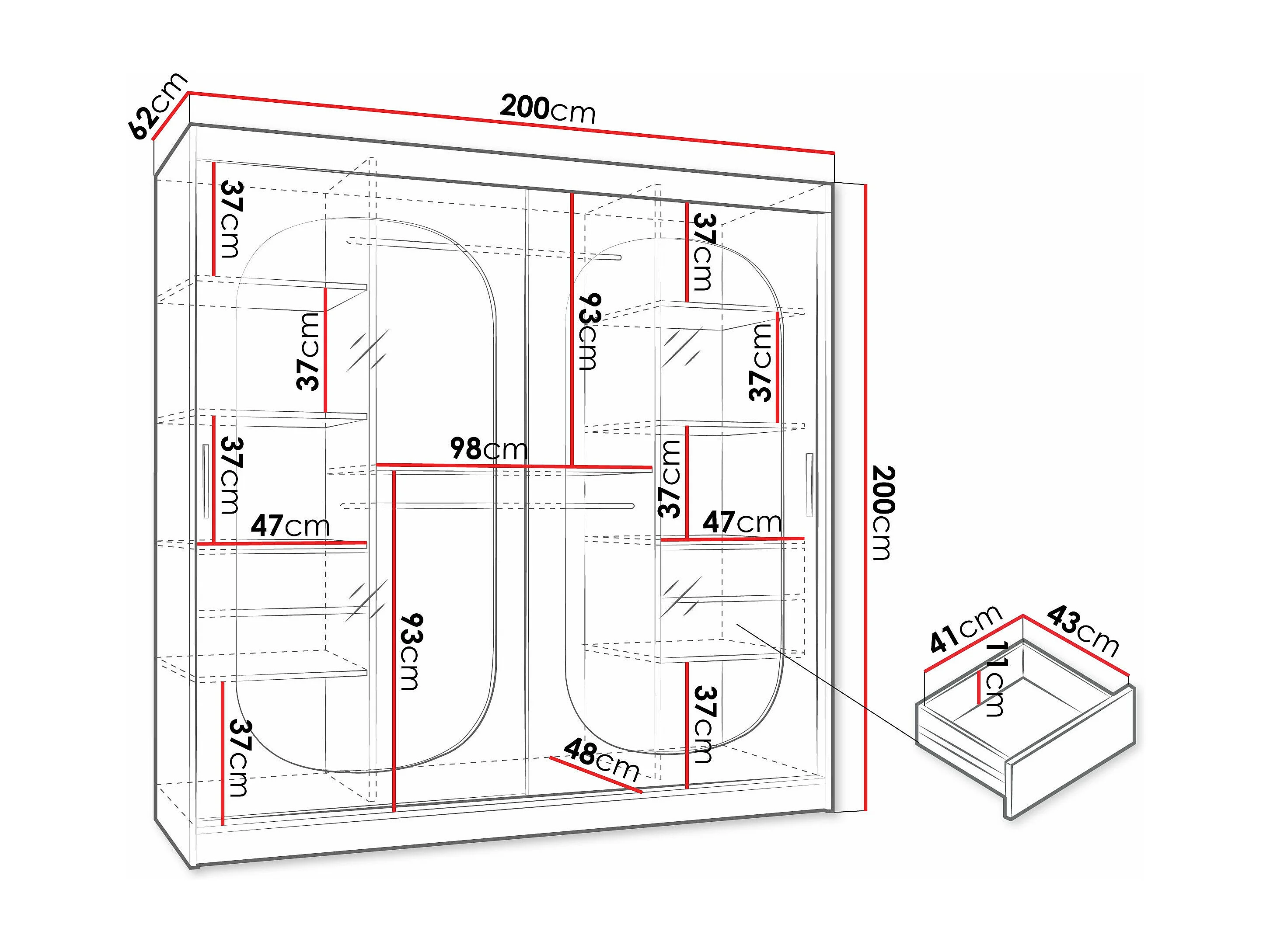 Armoire Hartford 521, Cachemire, 200x200x62cm, Portes d'armoire: Coulissantes