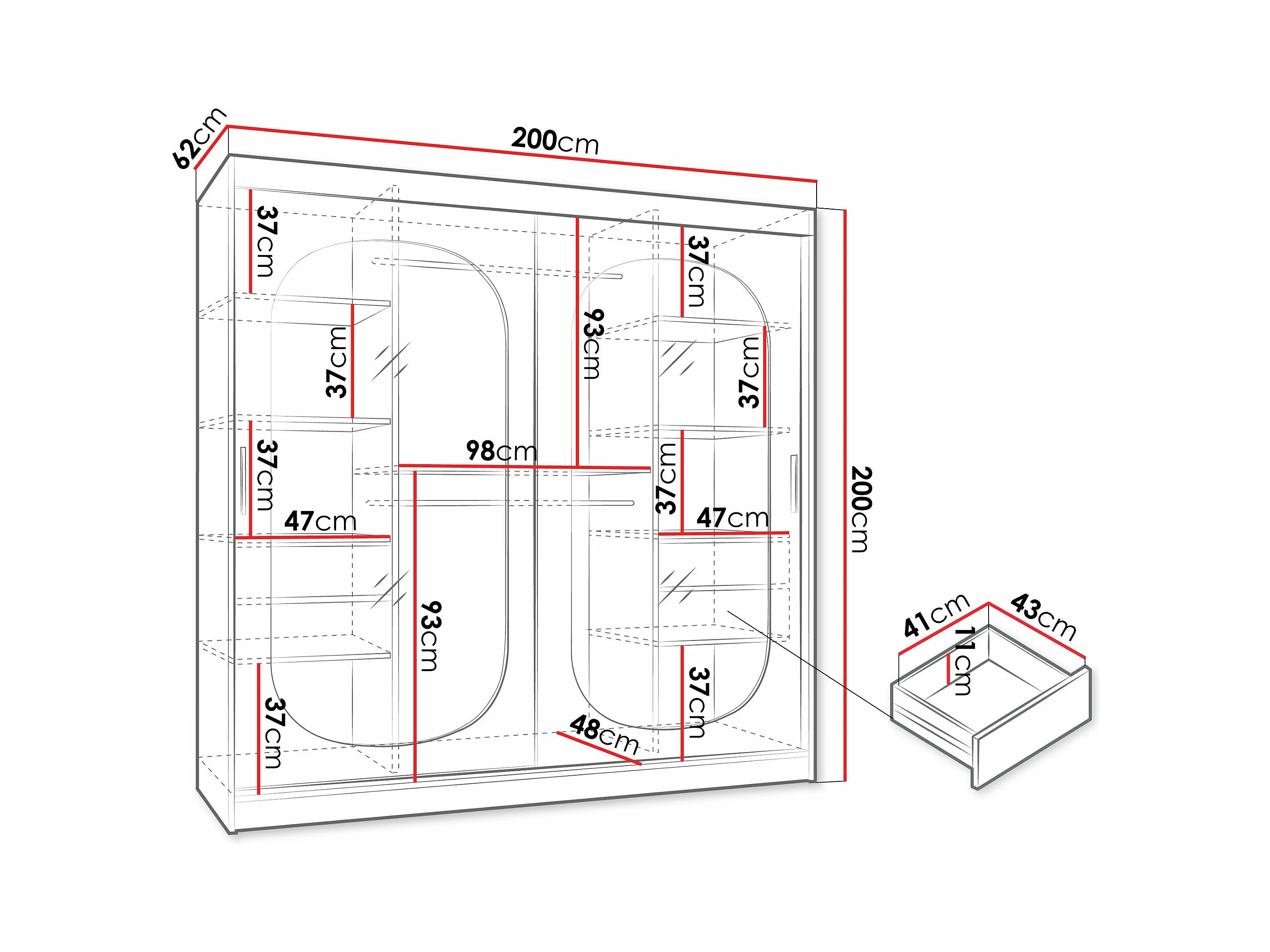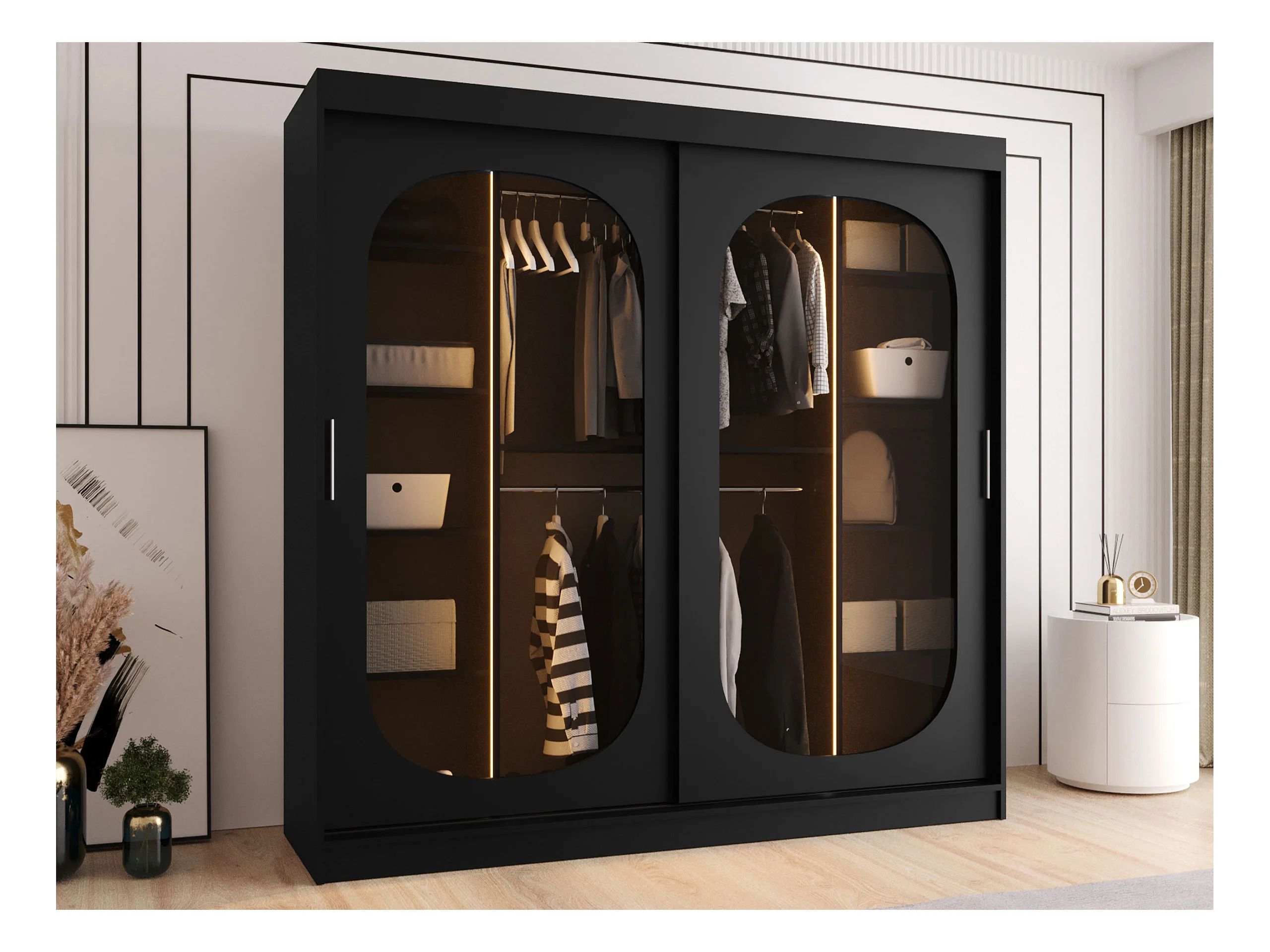 Armoire Hartford 521, Noir, 200x200x62cm, Portes d'armoire: Coulissantes