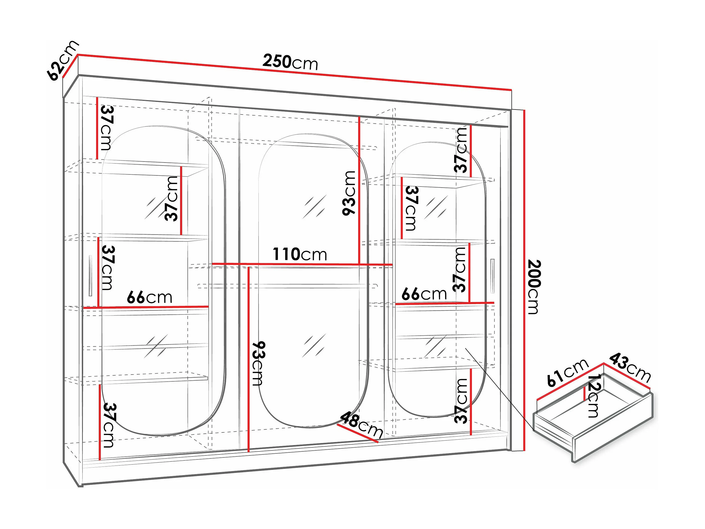 Armoire Hartford 522, Cachemire, 200x250x62cm, Portes d'armoire: Coulissantes