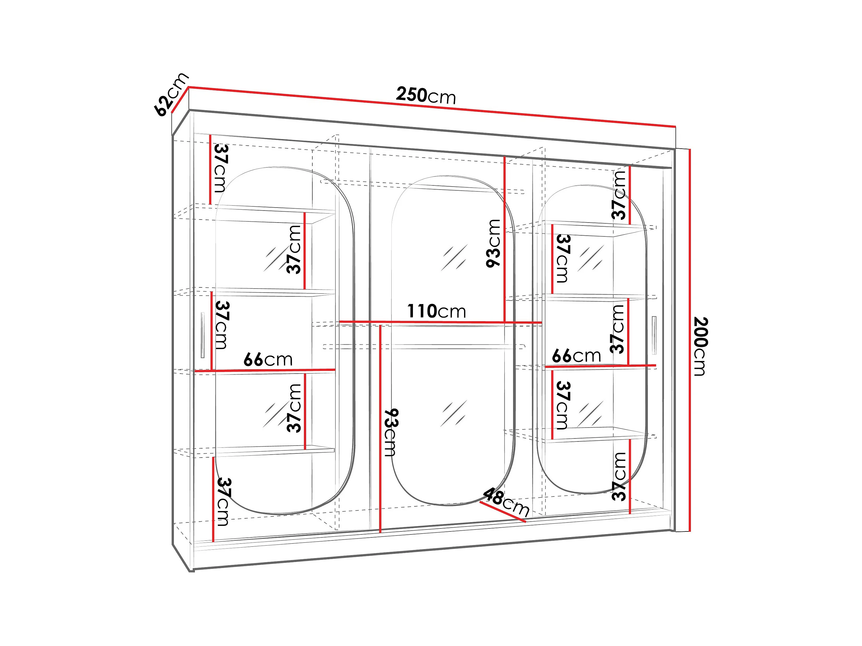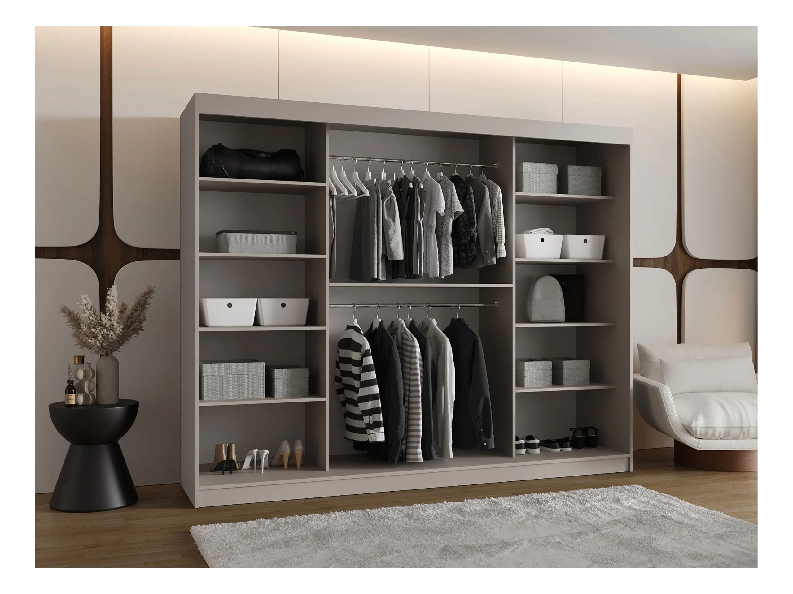 Armoire Hartford 522, Noir, 200x250x62cm, Portes d'armoire: Coulissantes