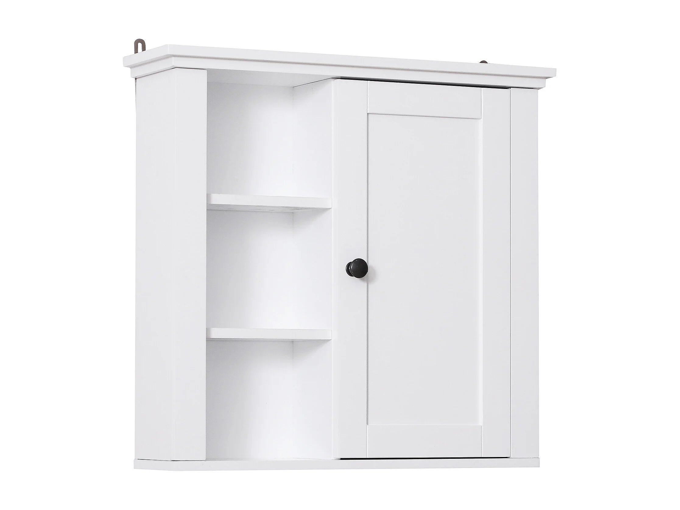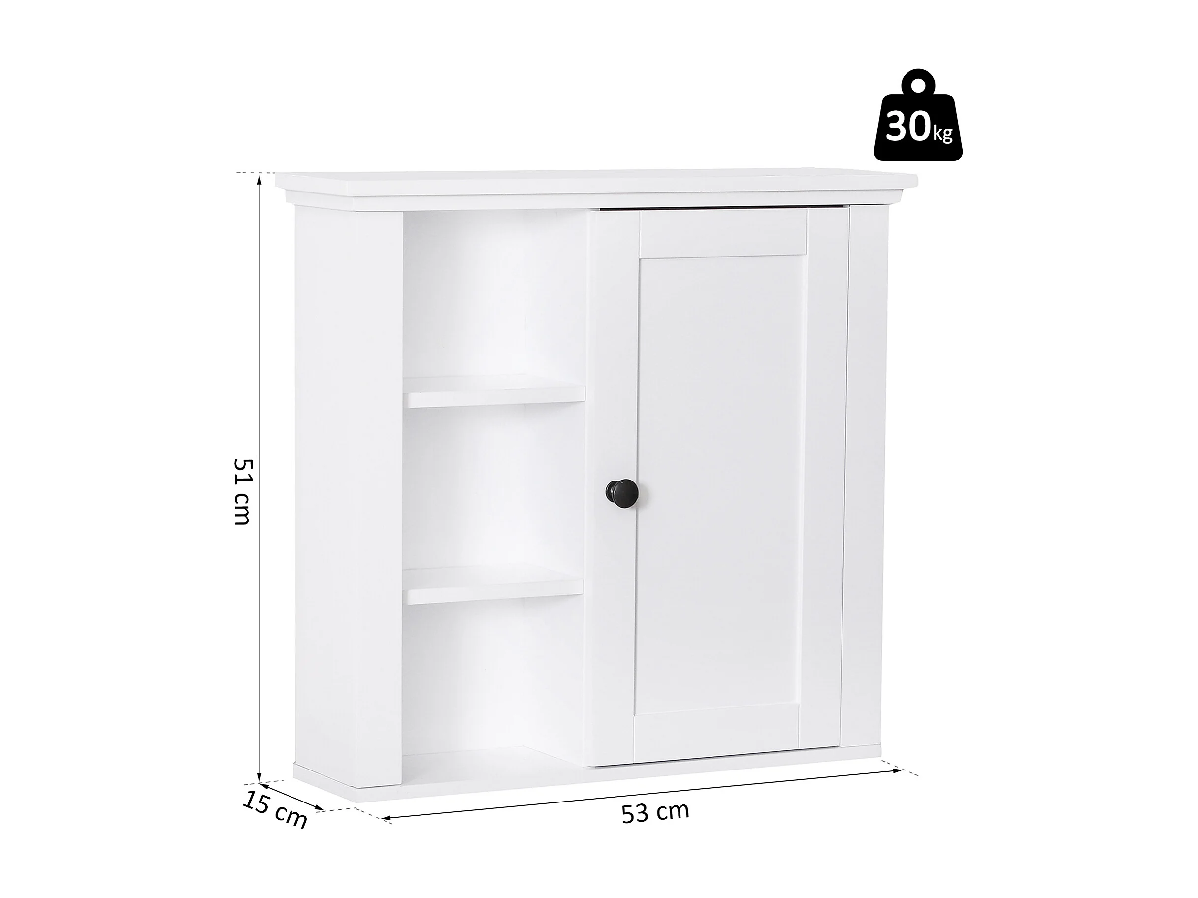 Armoire haute murale de salle de bain ou WC placard 1 porte 3 niches dim. 53L x 14,5l x 50,5H cm MDF panneaux particules blanc