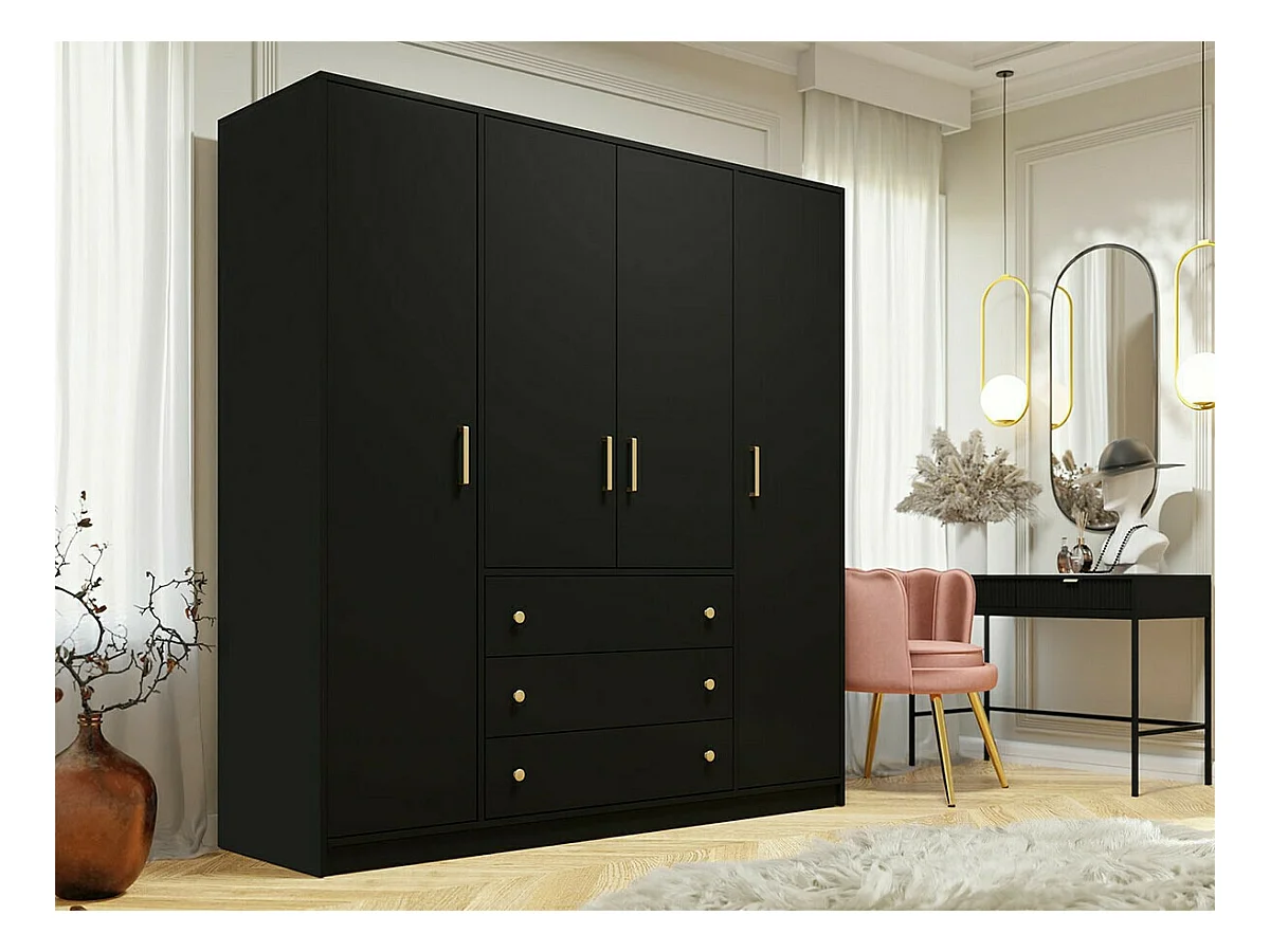 Armoire Honolulu 252, Doré|Noir, 200x196x58cm, Portes d'armoire: Avec des charnières