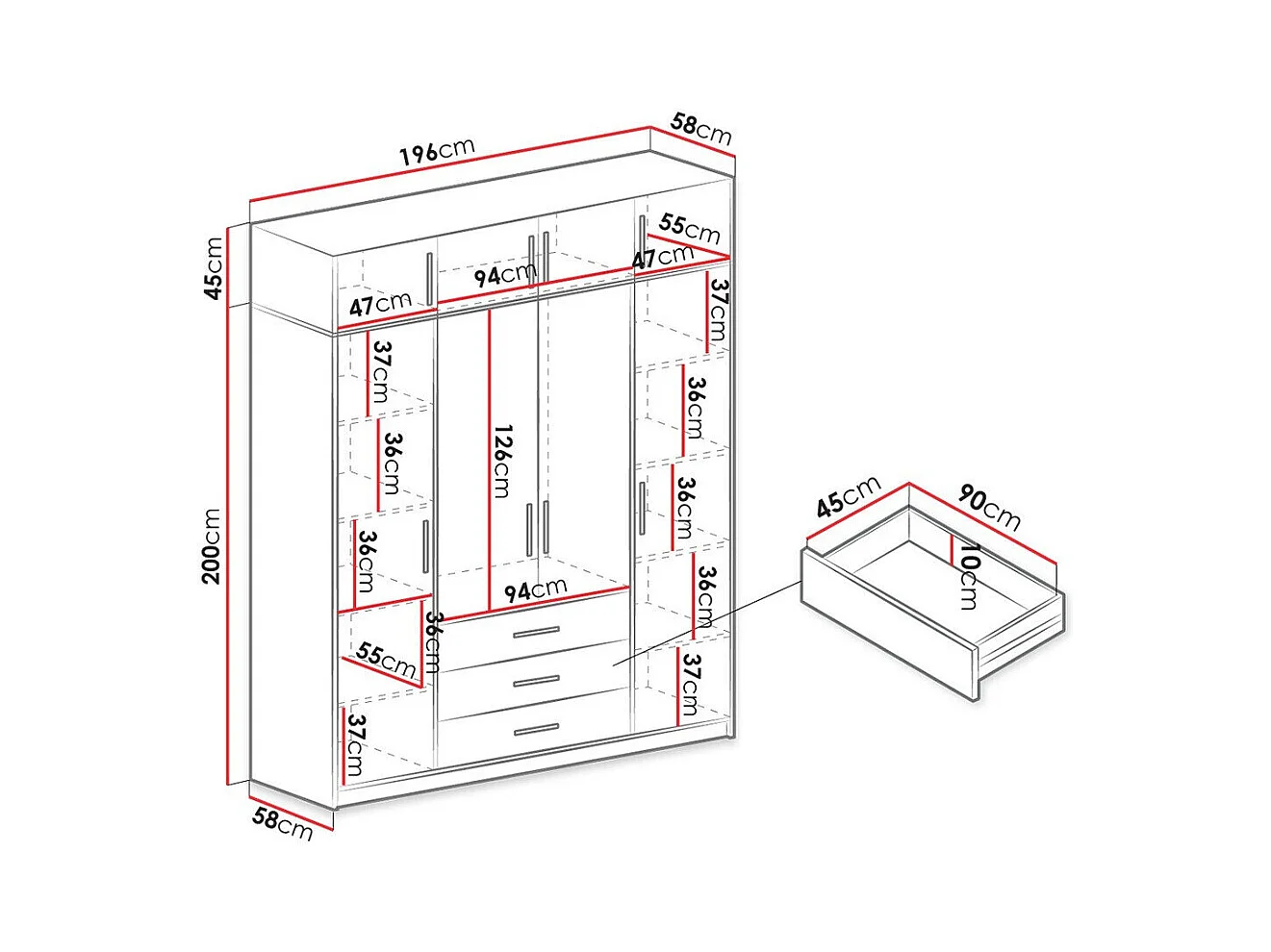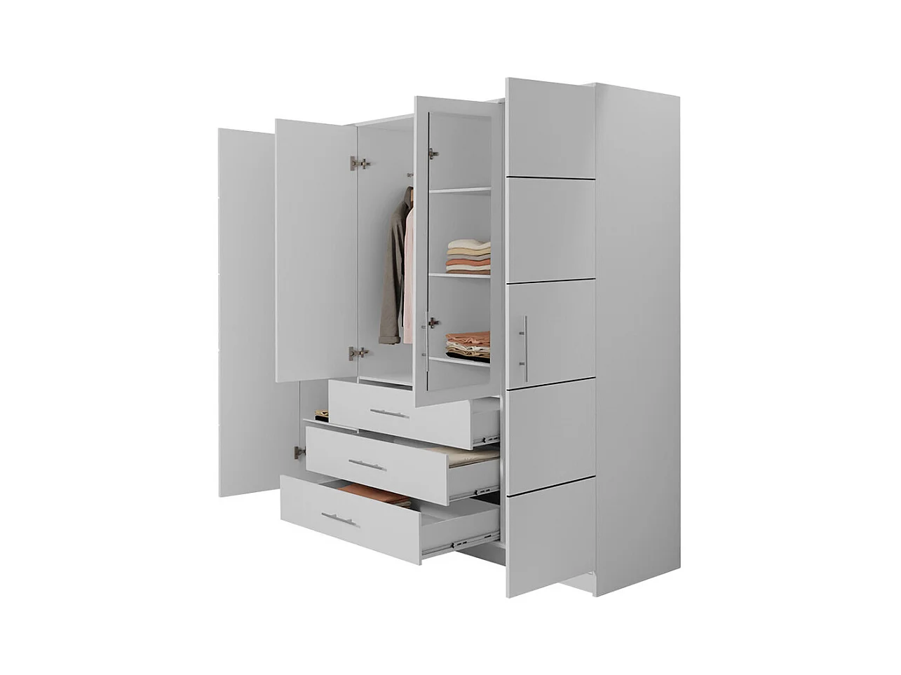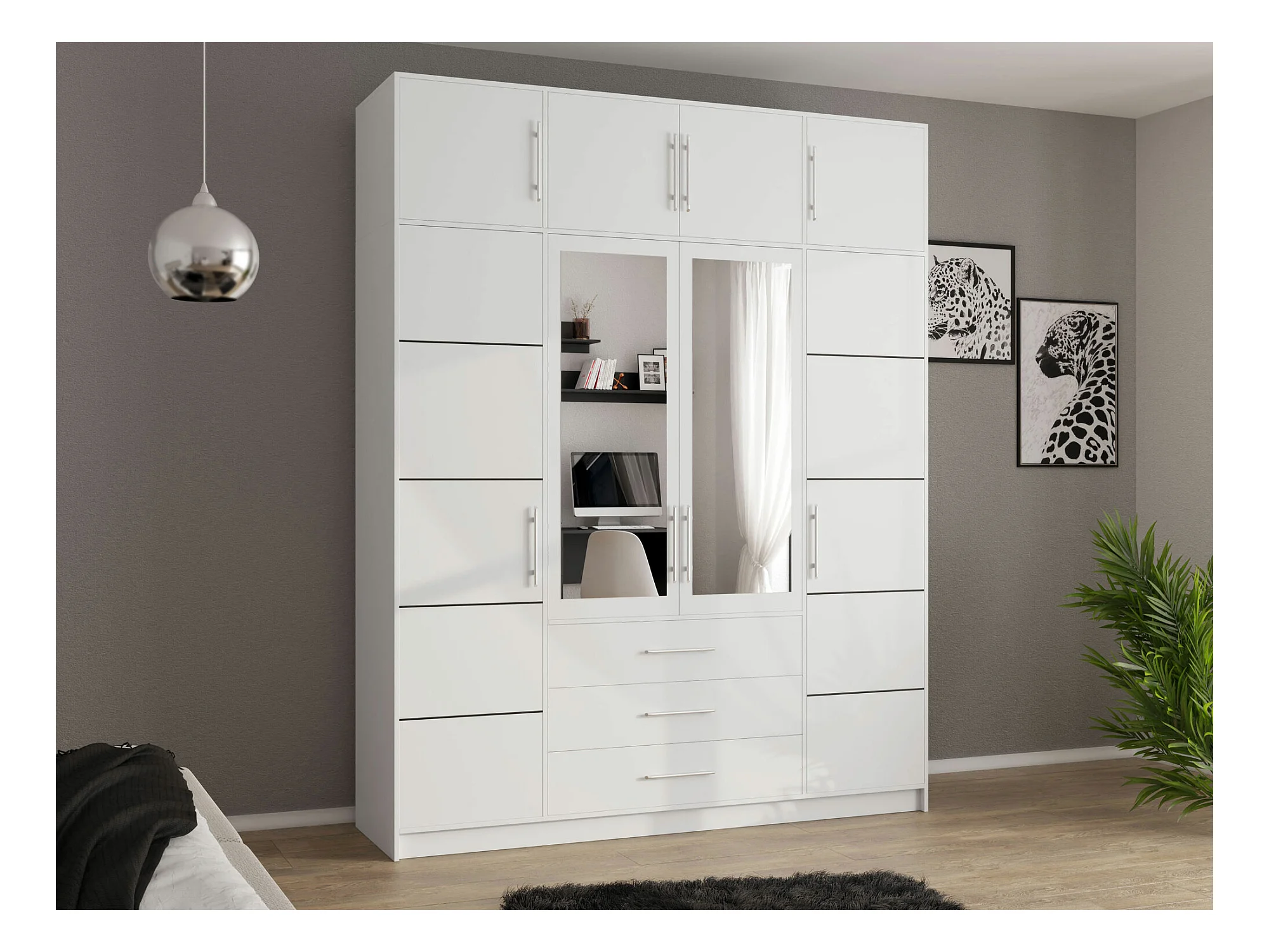Armoire Dortivu 147, Blanc, 245x196x58cm, Portes d'armoire: Avec des charnières