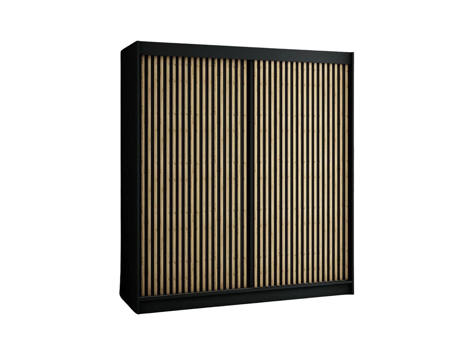 ARMOIRE LAMELO 1 À PORTES COULISSANTES 200/200/62 2 Portes (Noir/Noir/Artisan)