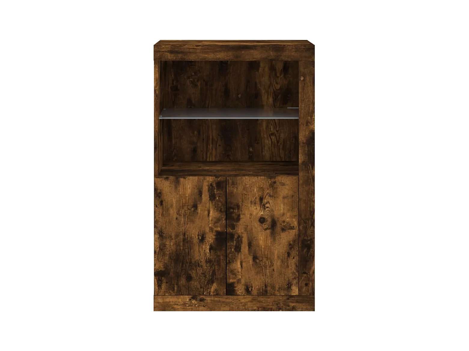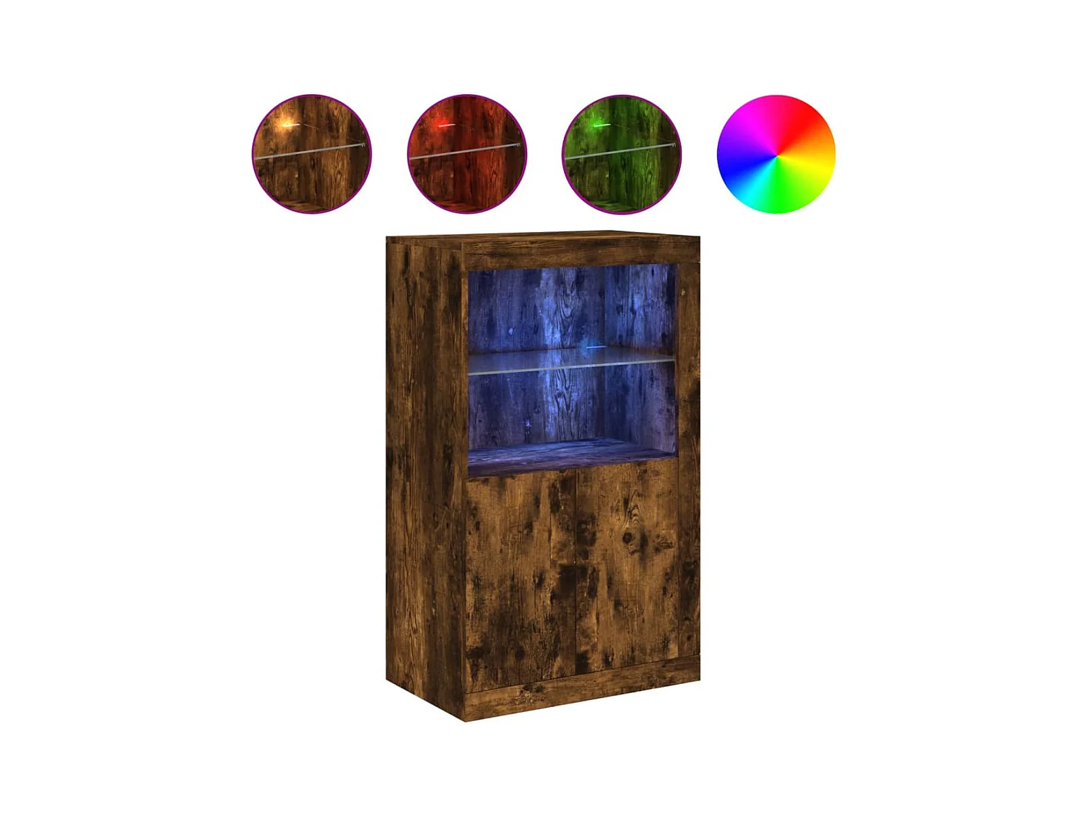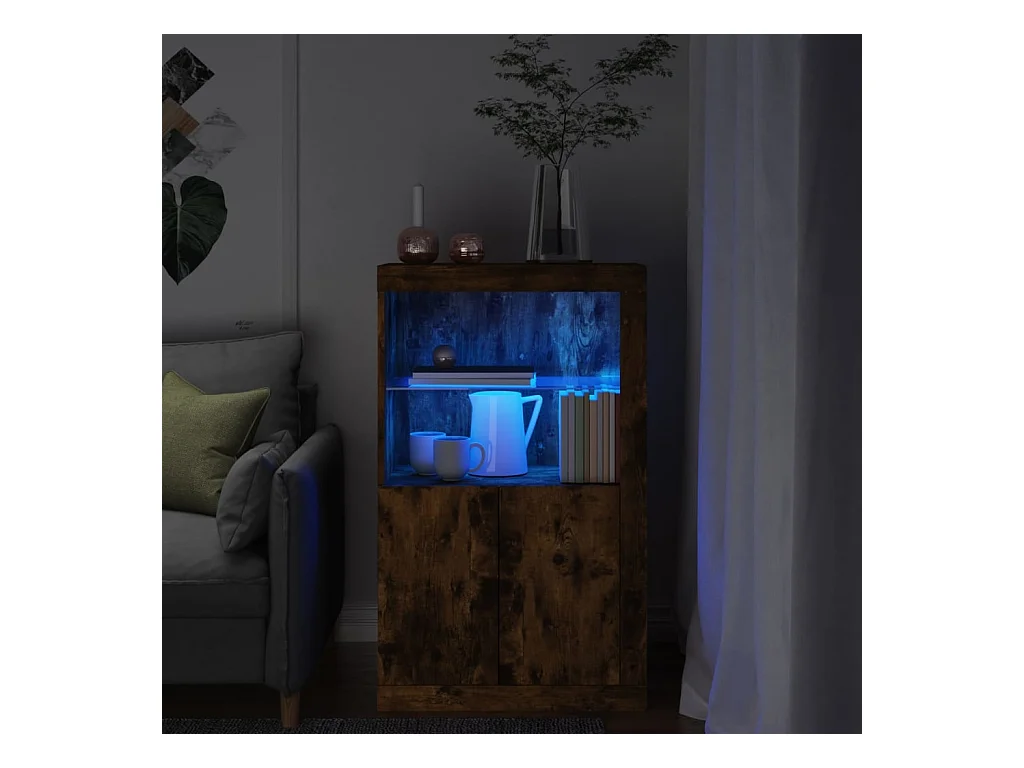 Armoire latérale avec lumières LED chêne fumé bois d'ingénierie