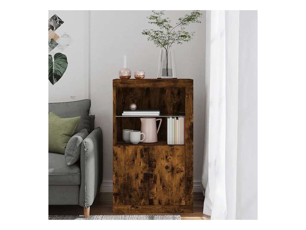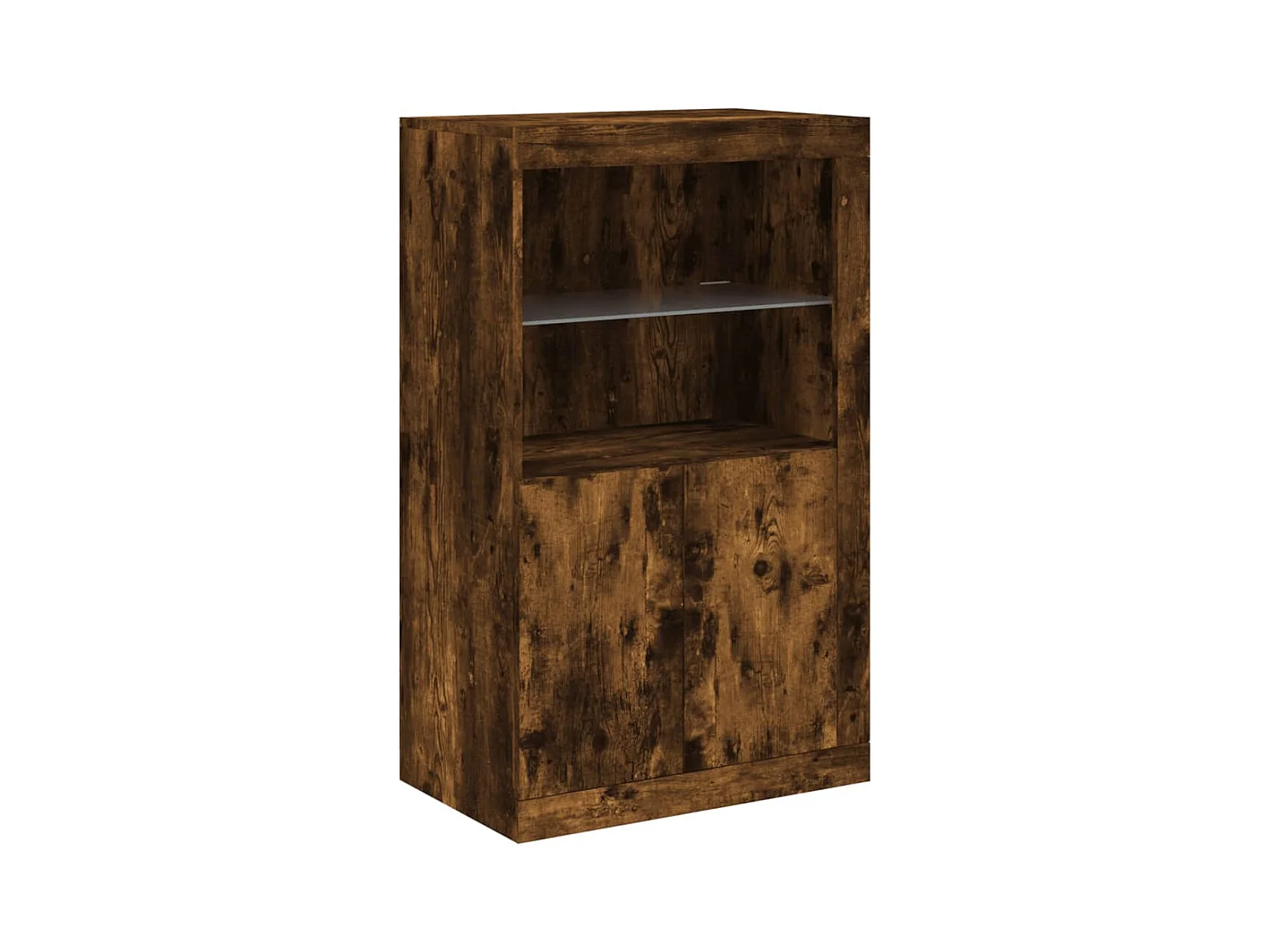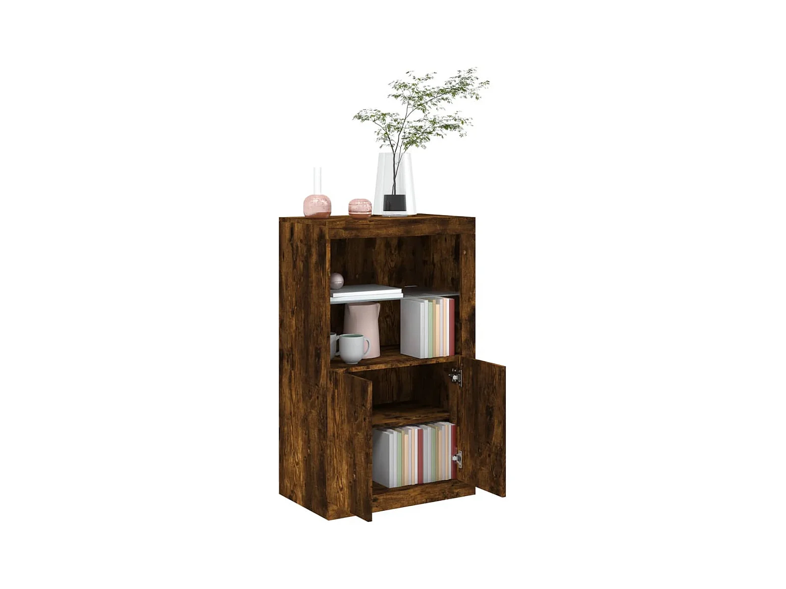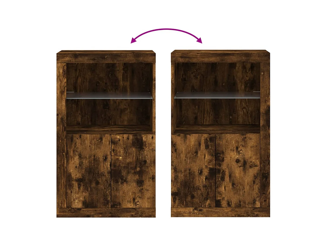 Armoire latérale avec lumières LED chêne fumé bois d'ingénierie