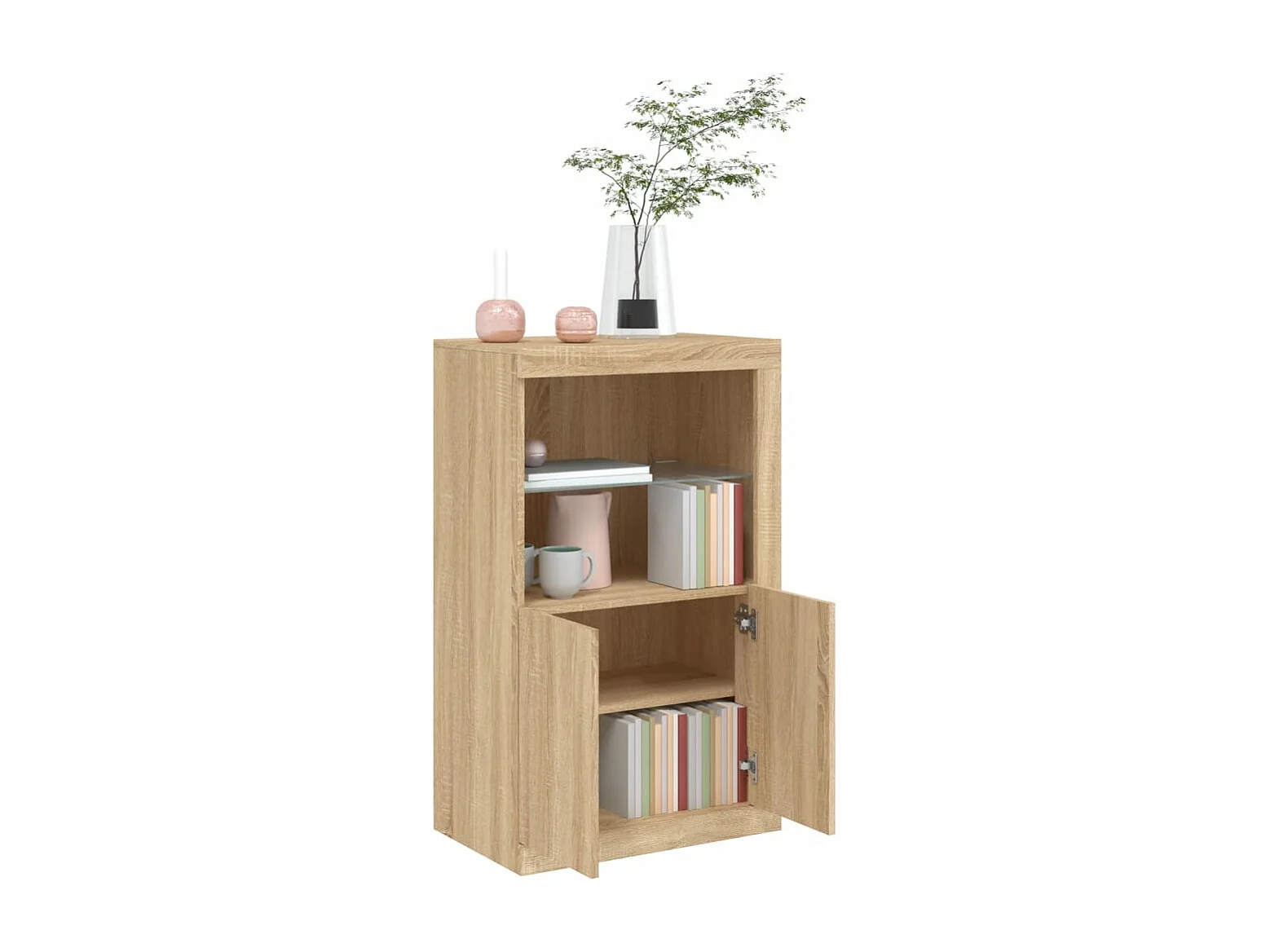 Armoire latérale avec lumières LED chêne fumé bois d'ingénierie