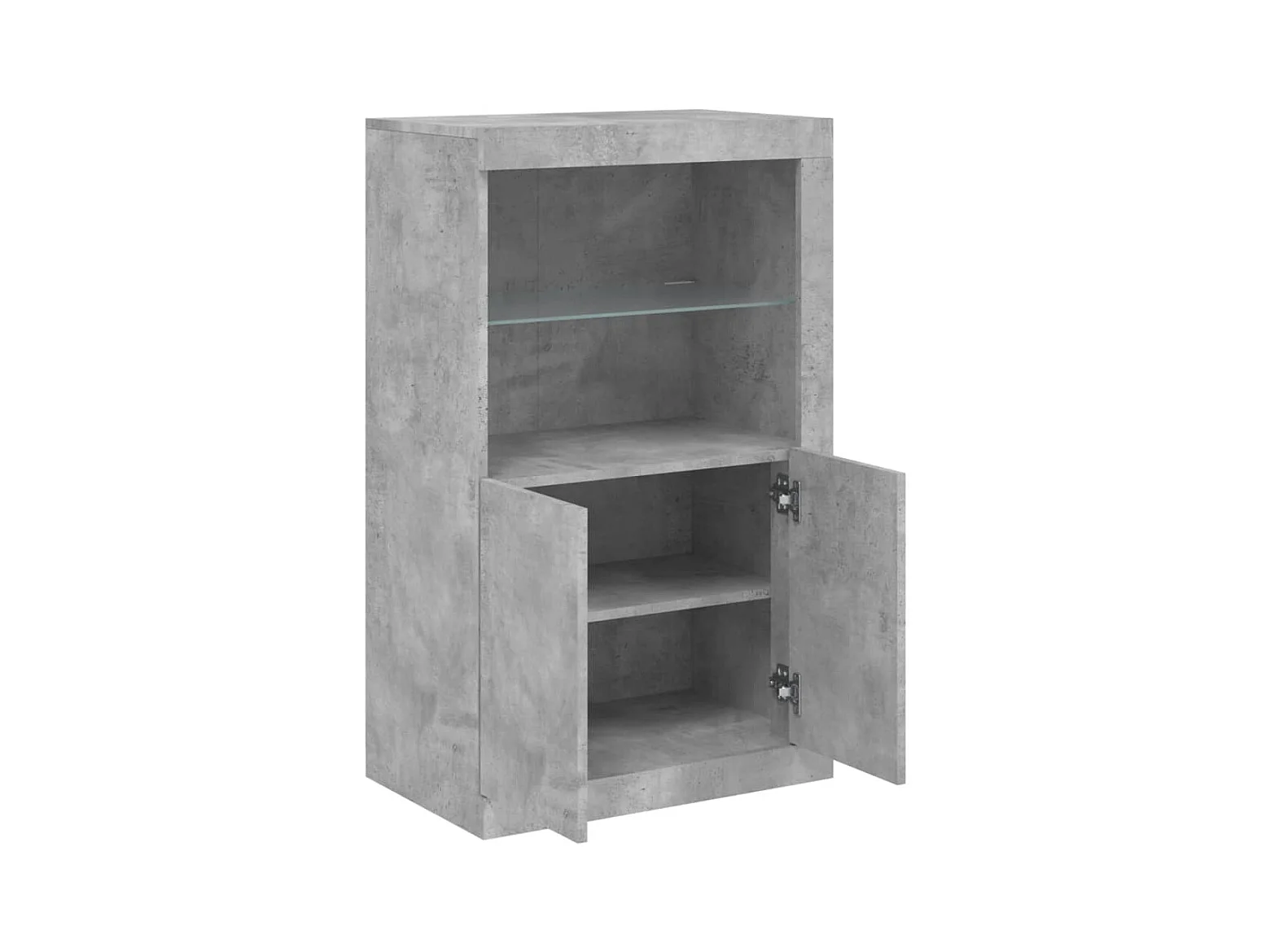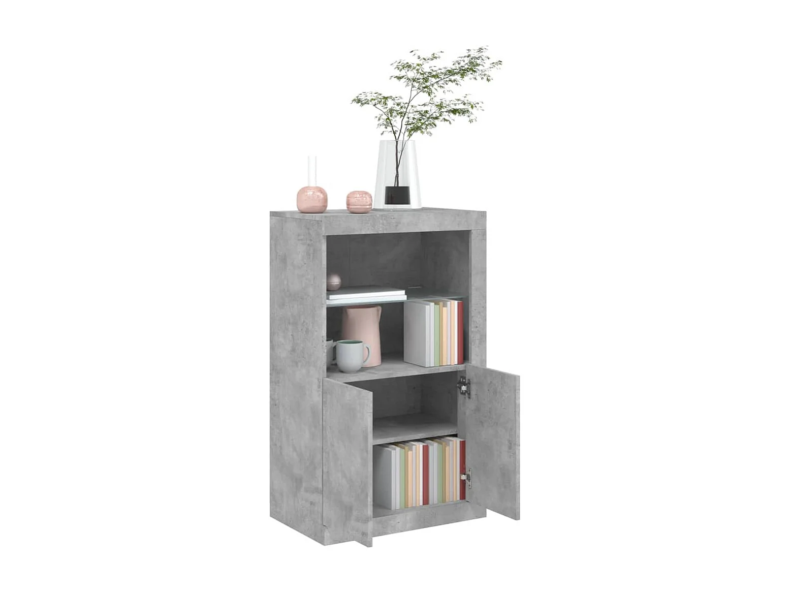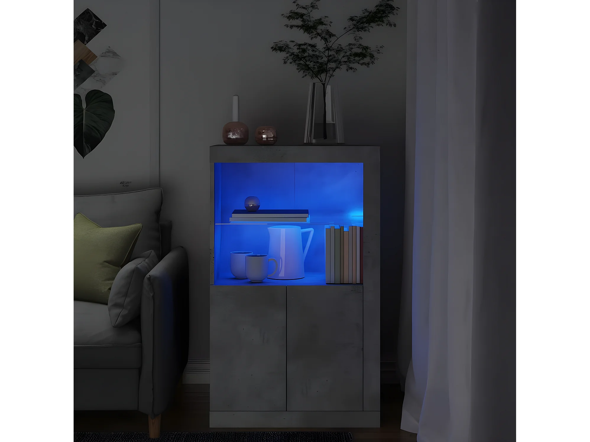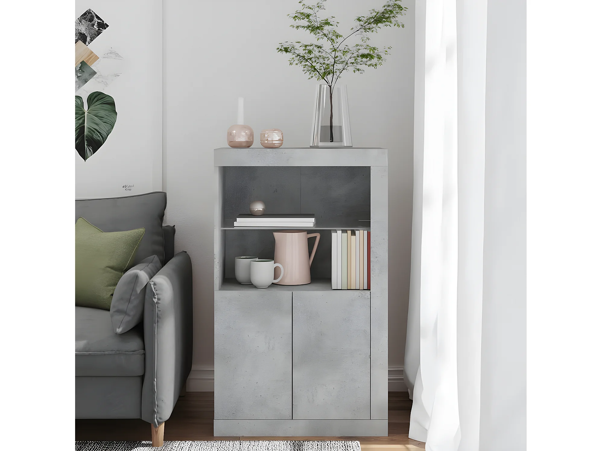 Armoire latérale avec lumières LED gris béton bois d'ingénierie