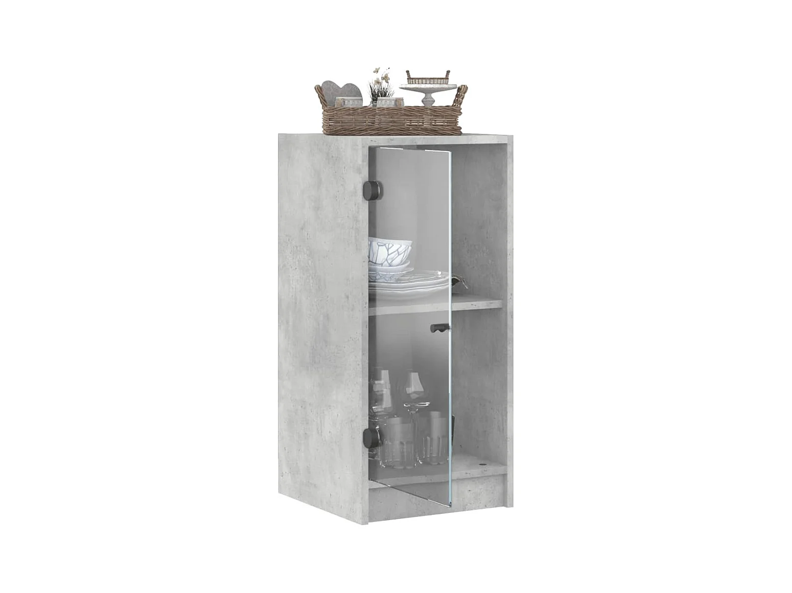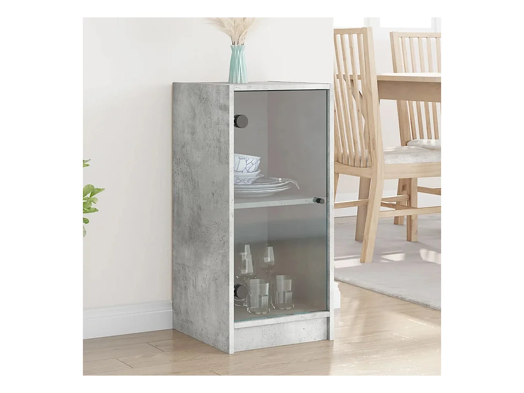 Armoire latérale avec porte en verre gris béton 35x37x100 cm FR50185
