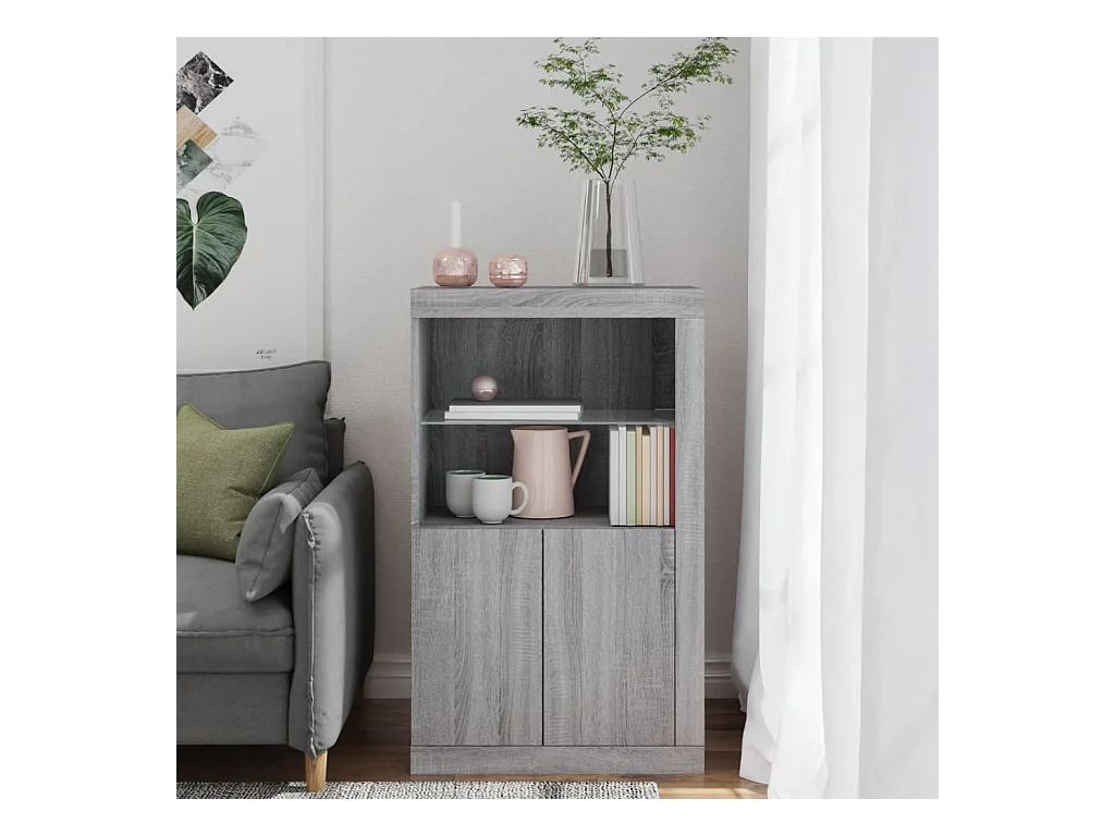 Armoire latérale et lumières LED sonoma gris bois d'ingénierie FR20982
