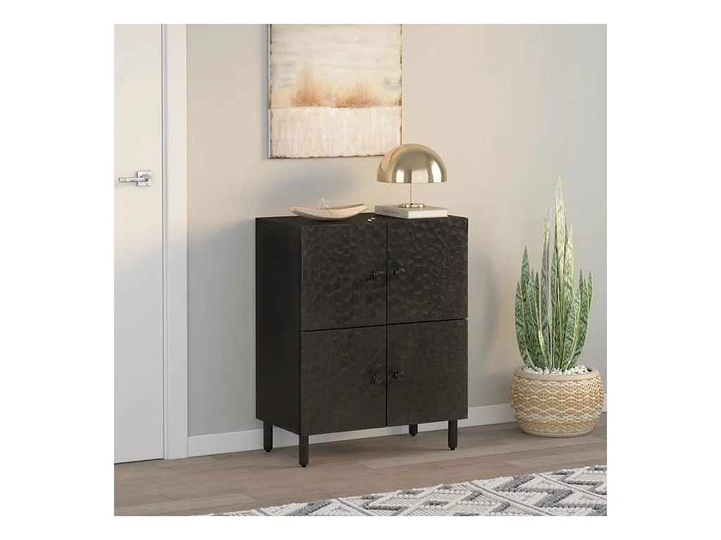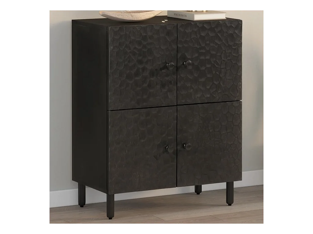 Armoire latérale noir 60x33x75 cm bois massif de manguier