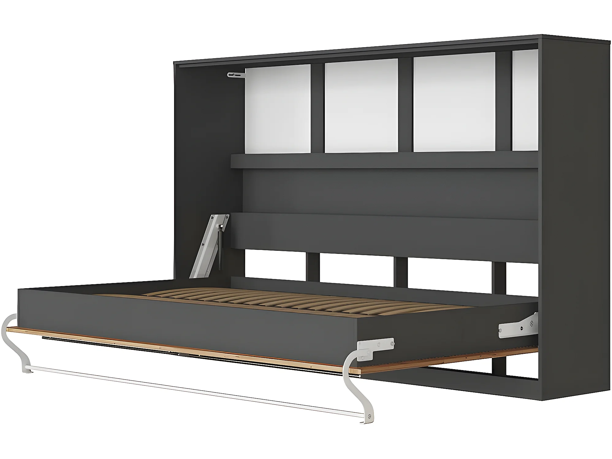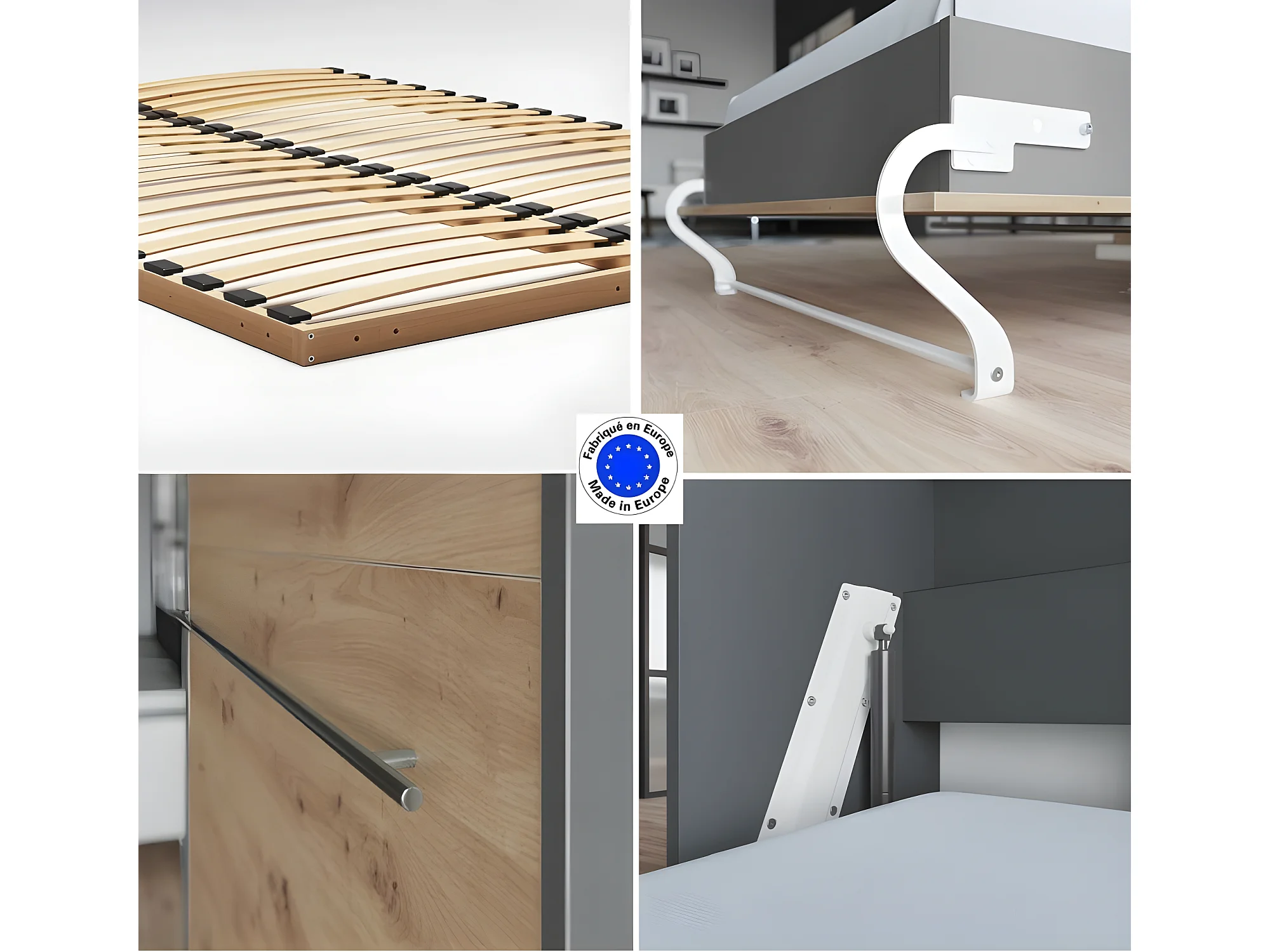 Armoire Lit escamotable 120x200cm Supérieur Horizontal Lit Rabattable Lit Mural Anthracite/Chêne sauvage