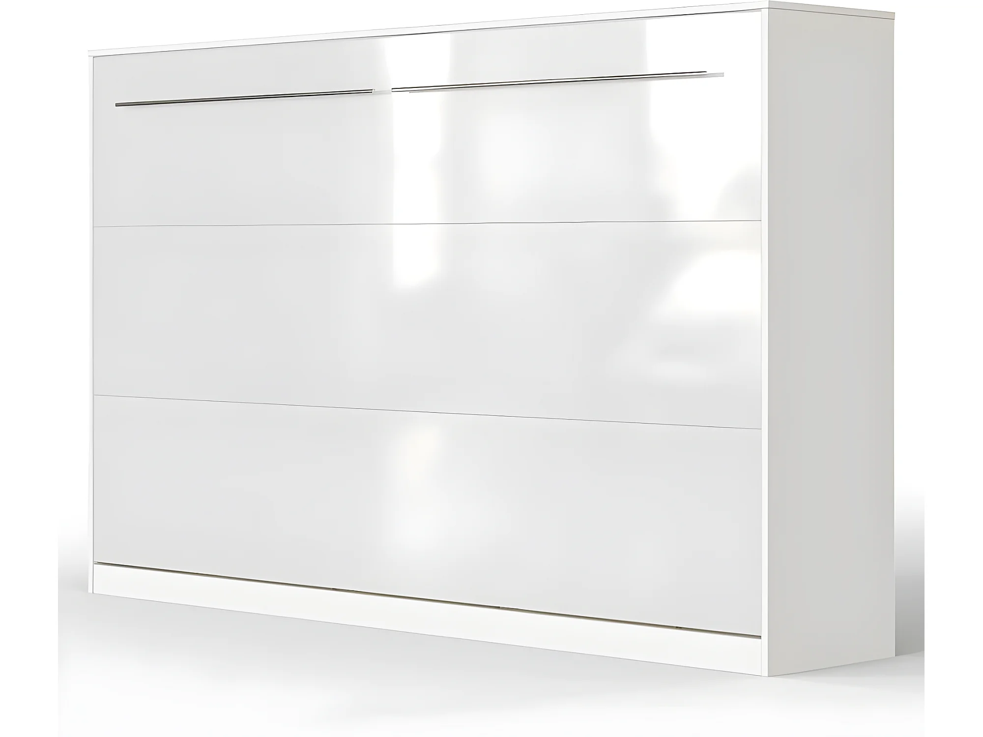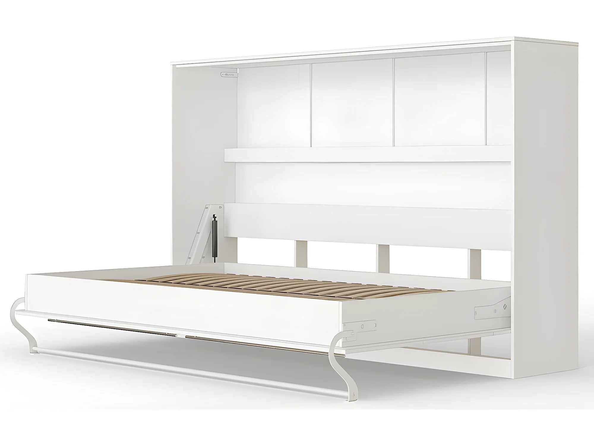 Armoire Lit escamotable 120x200cm Supérieur Horizontal Lit Rabattable Lit Mural Blanc/Blanc brillant