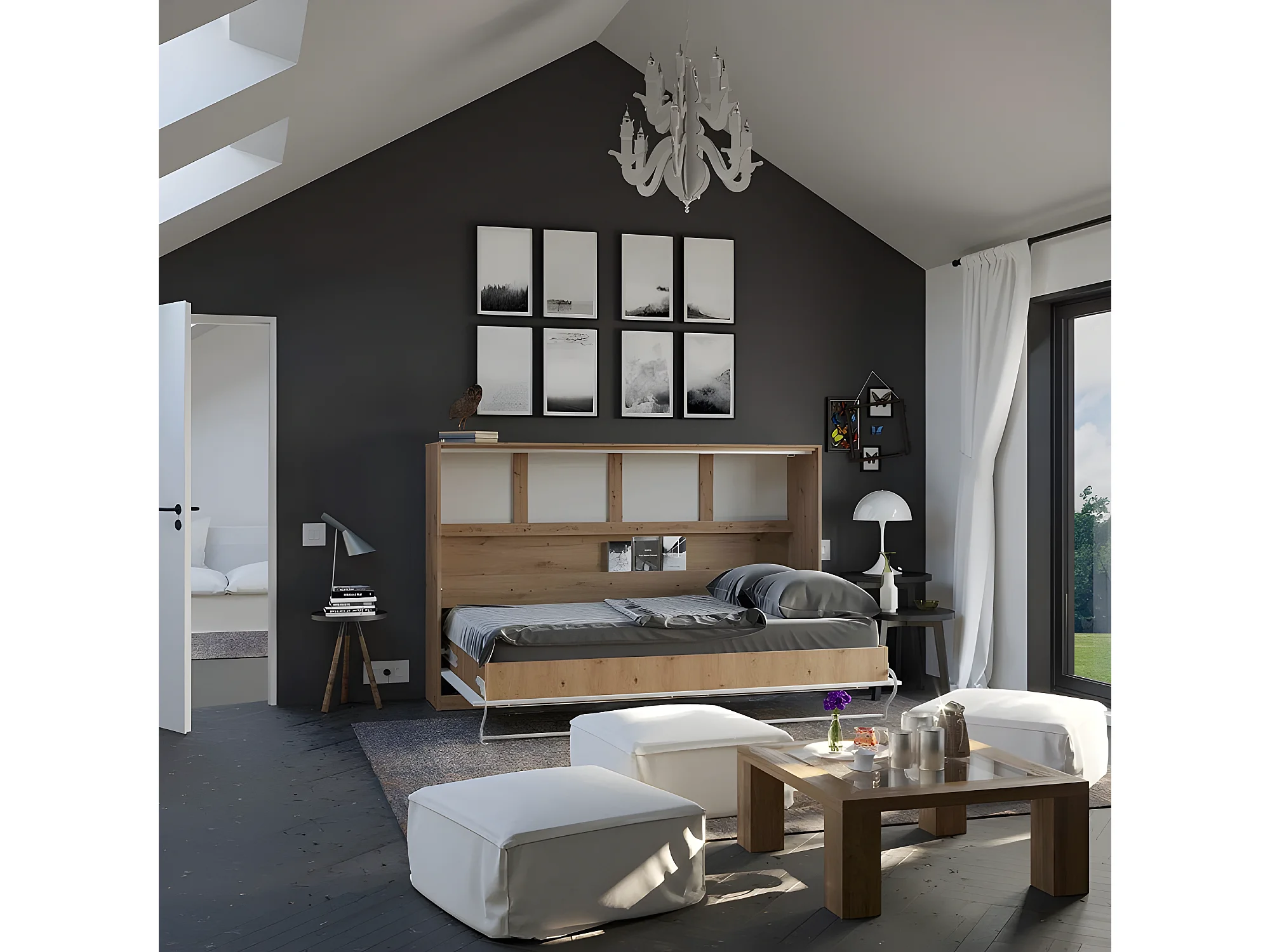 Armoire Lit escamotable 120x200cm Supérieur Horizontal Lit Rabattable Lit Mural Chêne Sauvage/blanc brillant