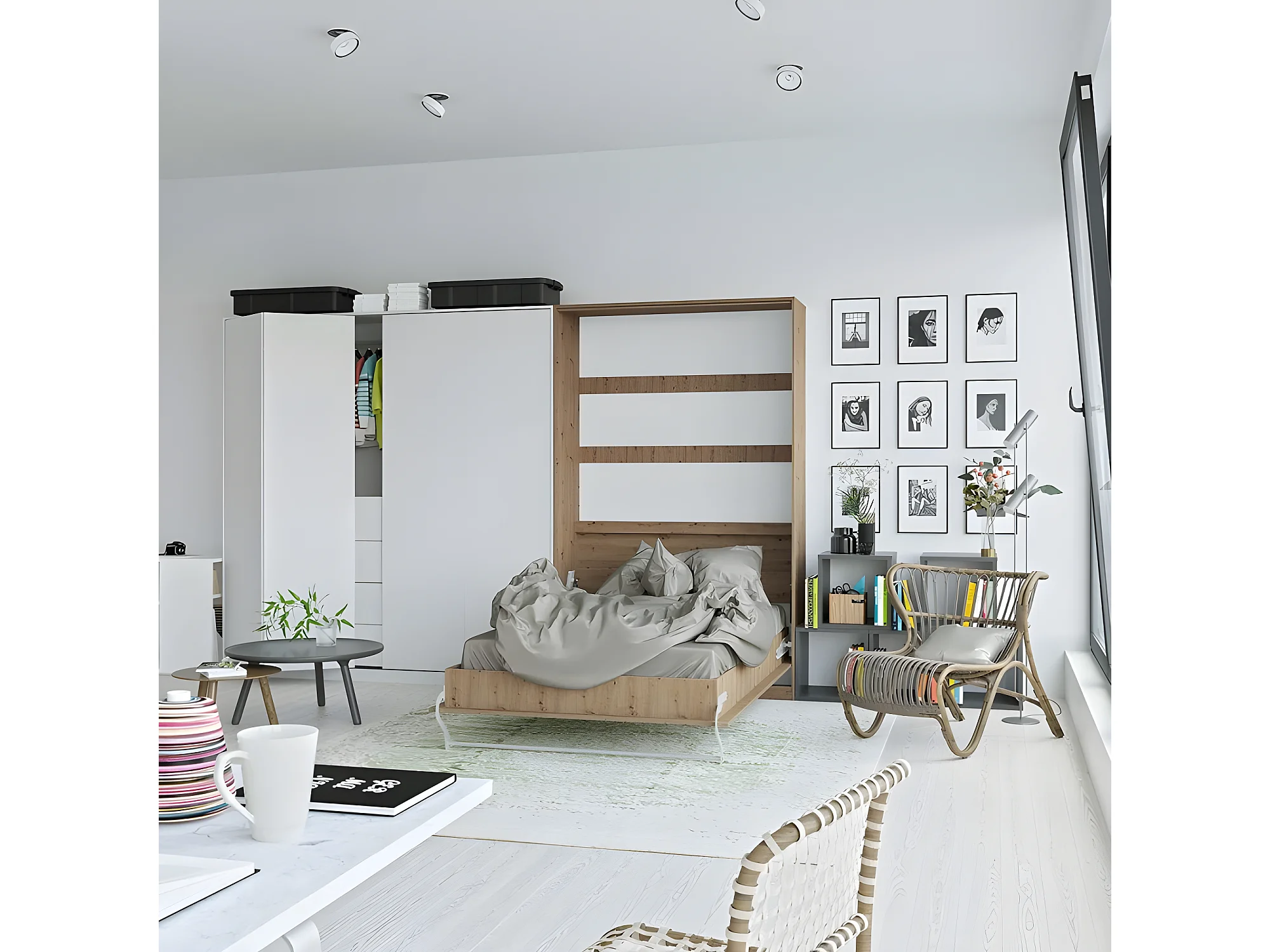 Armoire Lit escamotable 120x200cm Vertical Lit Rabattable Lit Mural Supérieur Chêne Sauvage/Chêne Sauvage