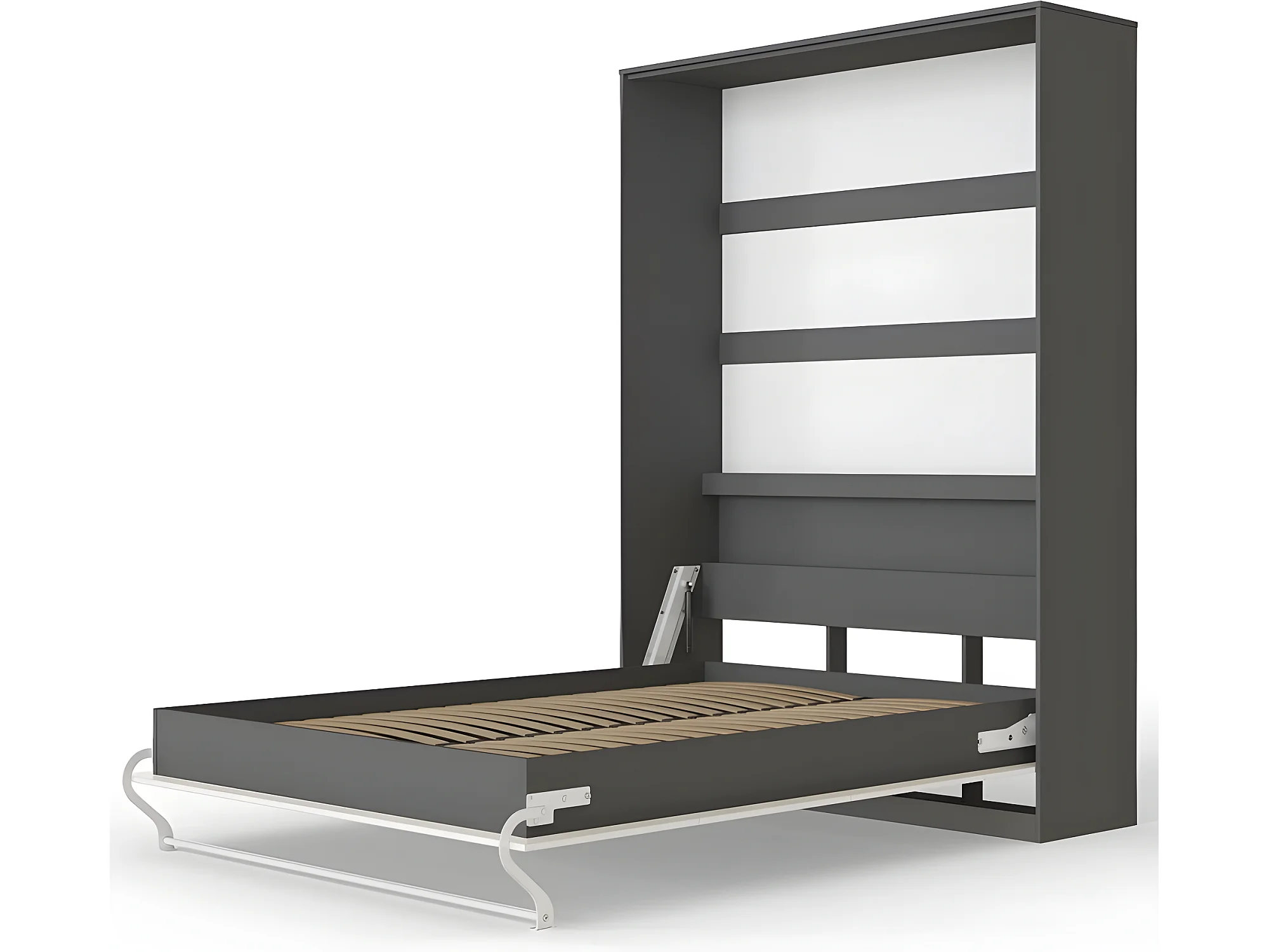 Armoire Lit escamotable 140x200cm Lit Rabattable Lit Mural Supérieur Vertical Anthracite/blanc brillant