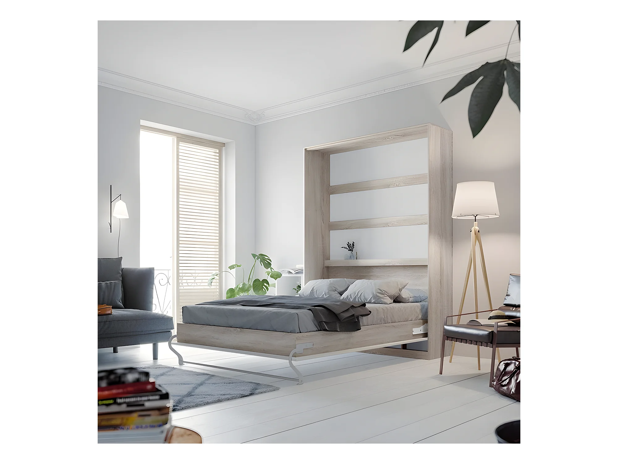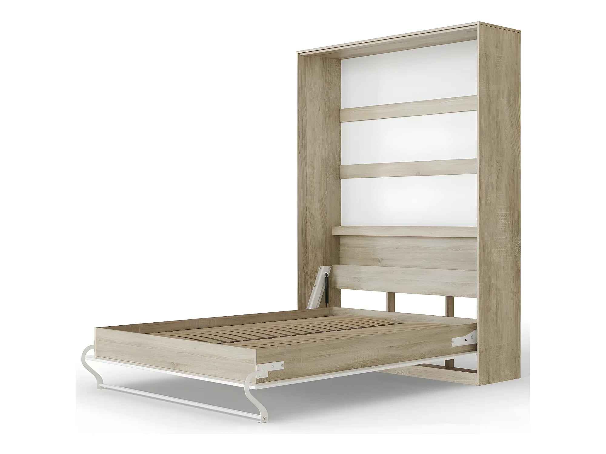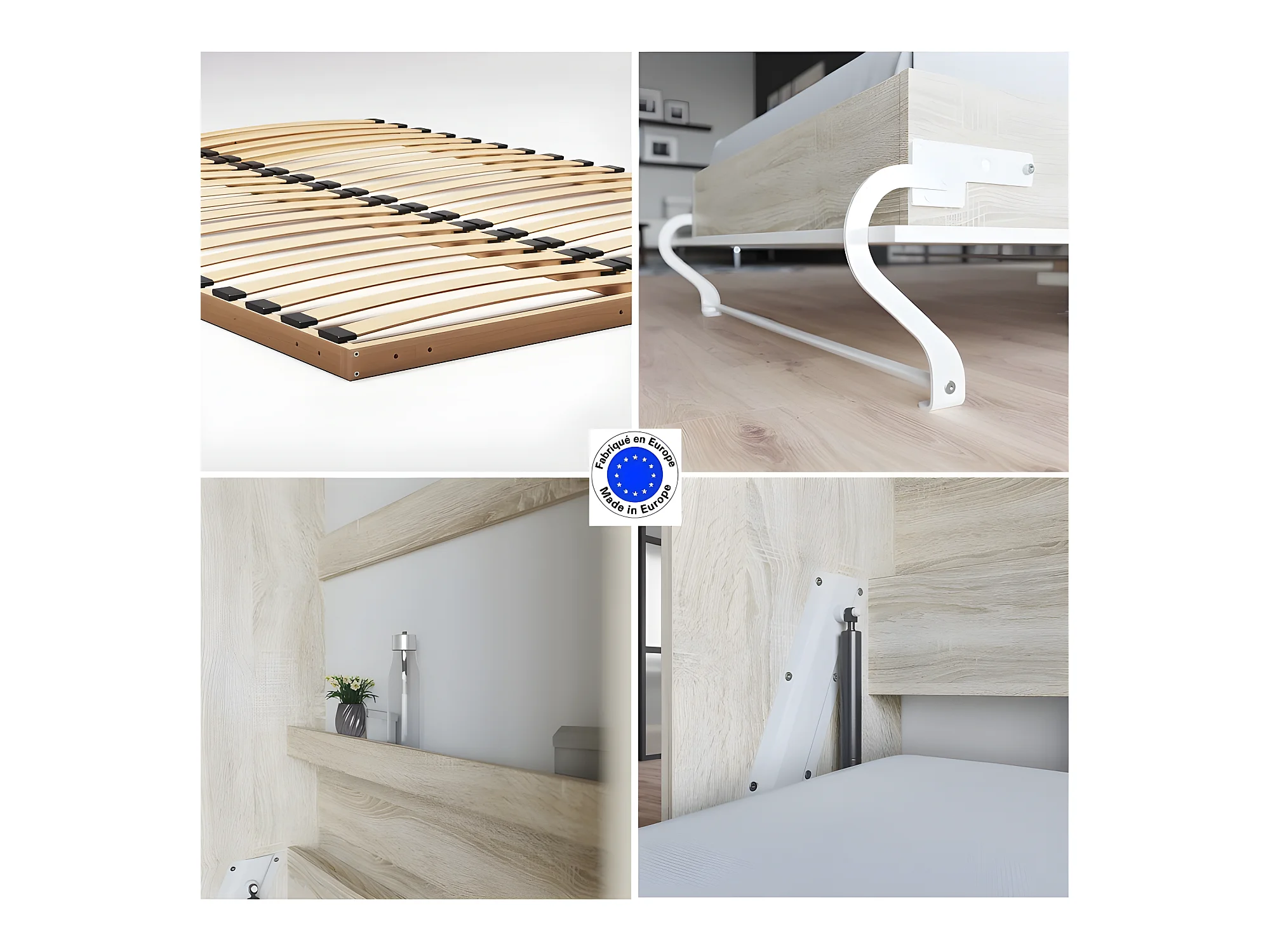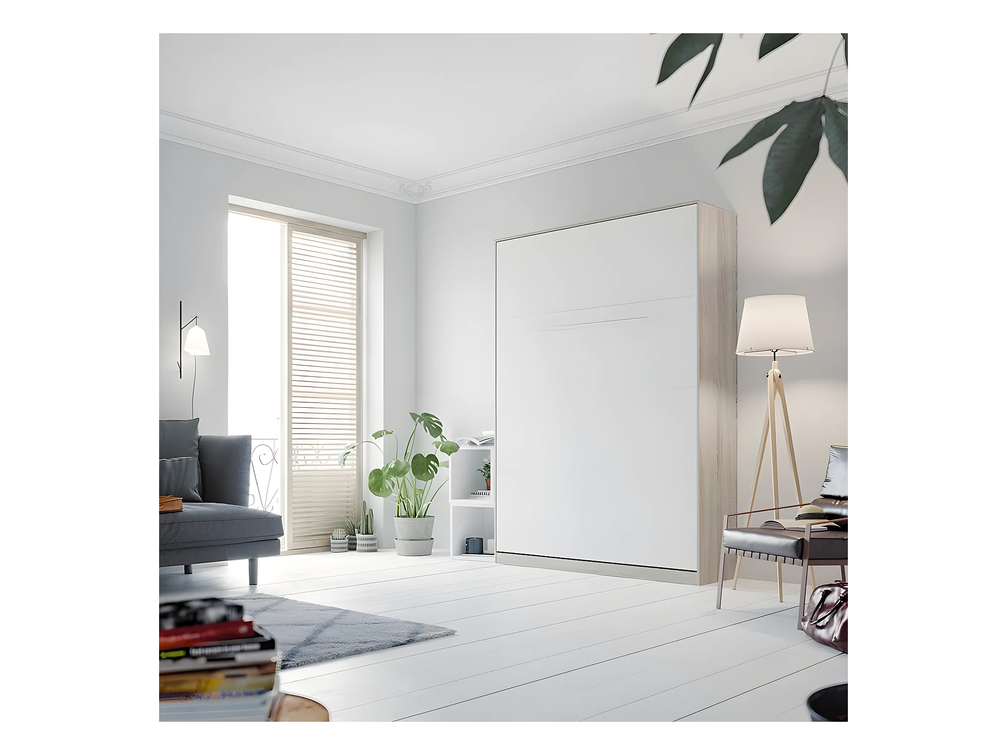 Armoire Lit escamotable 140x200cm Lit Rabattable Lit Mural Supérieur Vertical Chêne Sonoma/Blanc