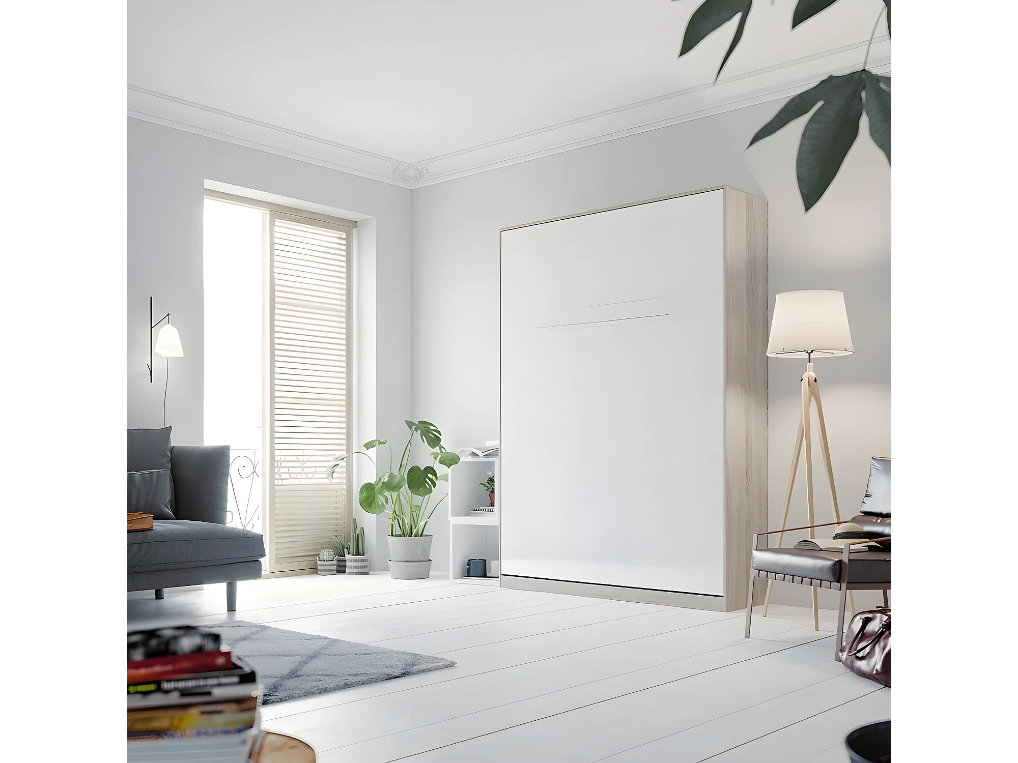 Armoire Lit escamotable 140x200cm Lit Rabattable Lit Mural Supérieur Vertical Chêne Sonoma/Blanc brillant