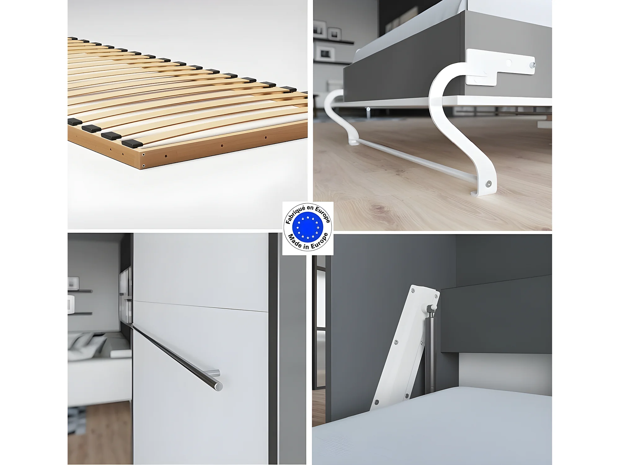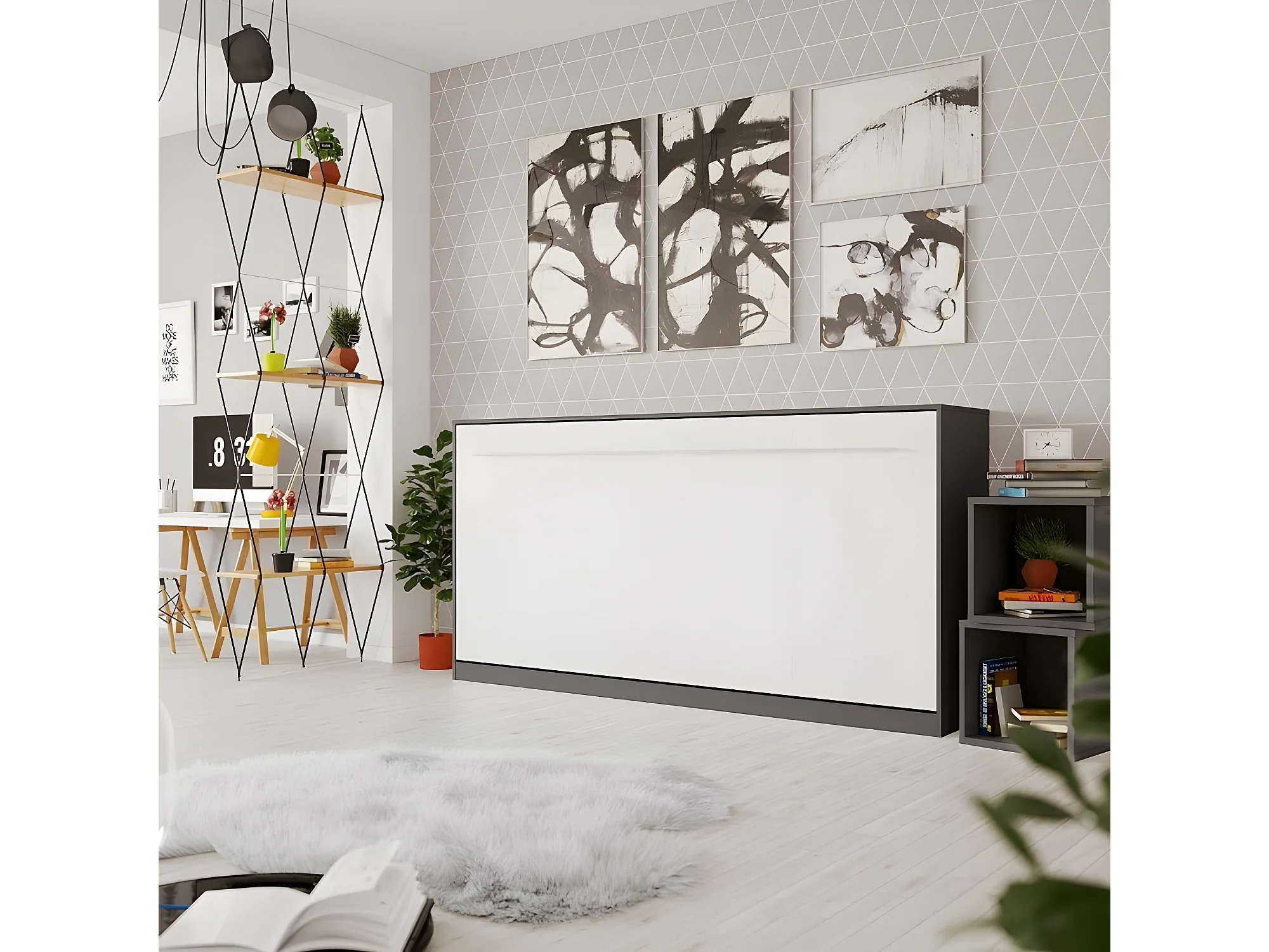 Armoire Lit escamotable 90x200cm Supérieur Horizontal Lit Rabattable Lit Mural Anthracite/Blanc